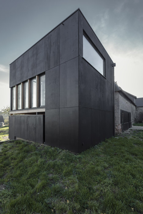 13 张 熏黑木材小屋-位于法国南部,采用熏黑的胶合板箱为主材料,为居民提供了一个60平方米私人图书馆和车库