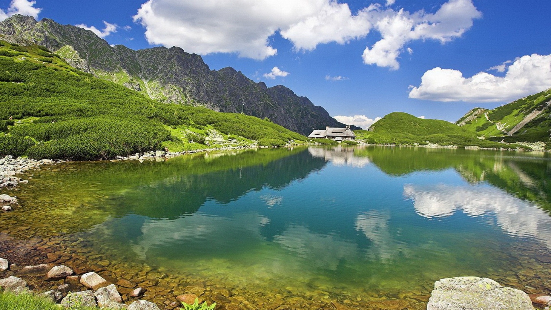 1 张 山湖岸岩石的小屋