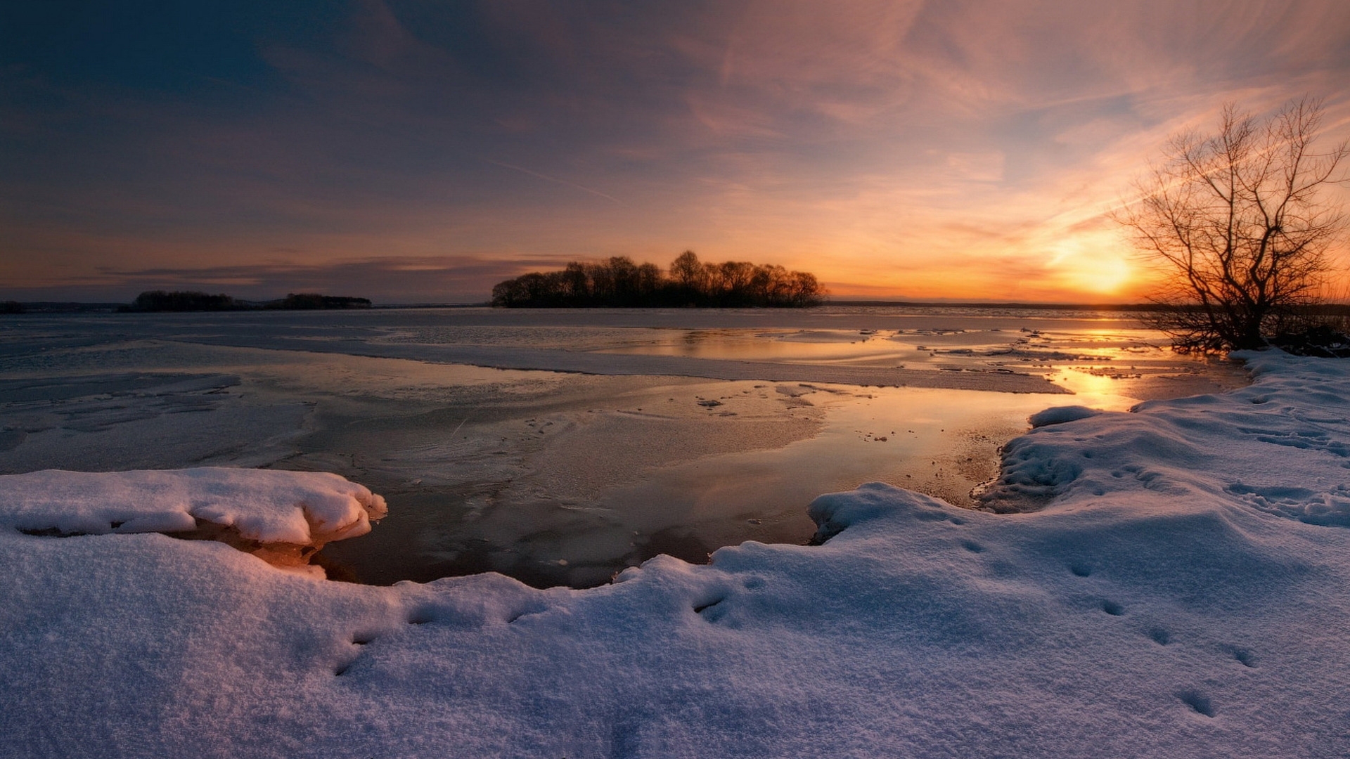 1 张 日落下的冬季结冻湖