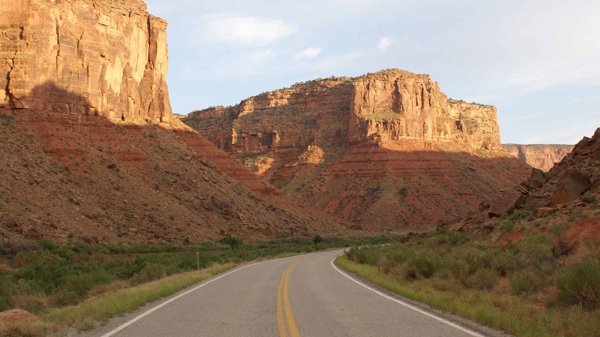 1 张 早晨中的双黄线马路