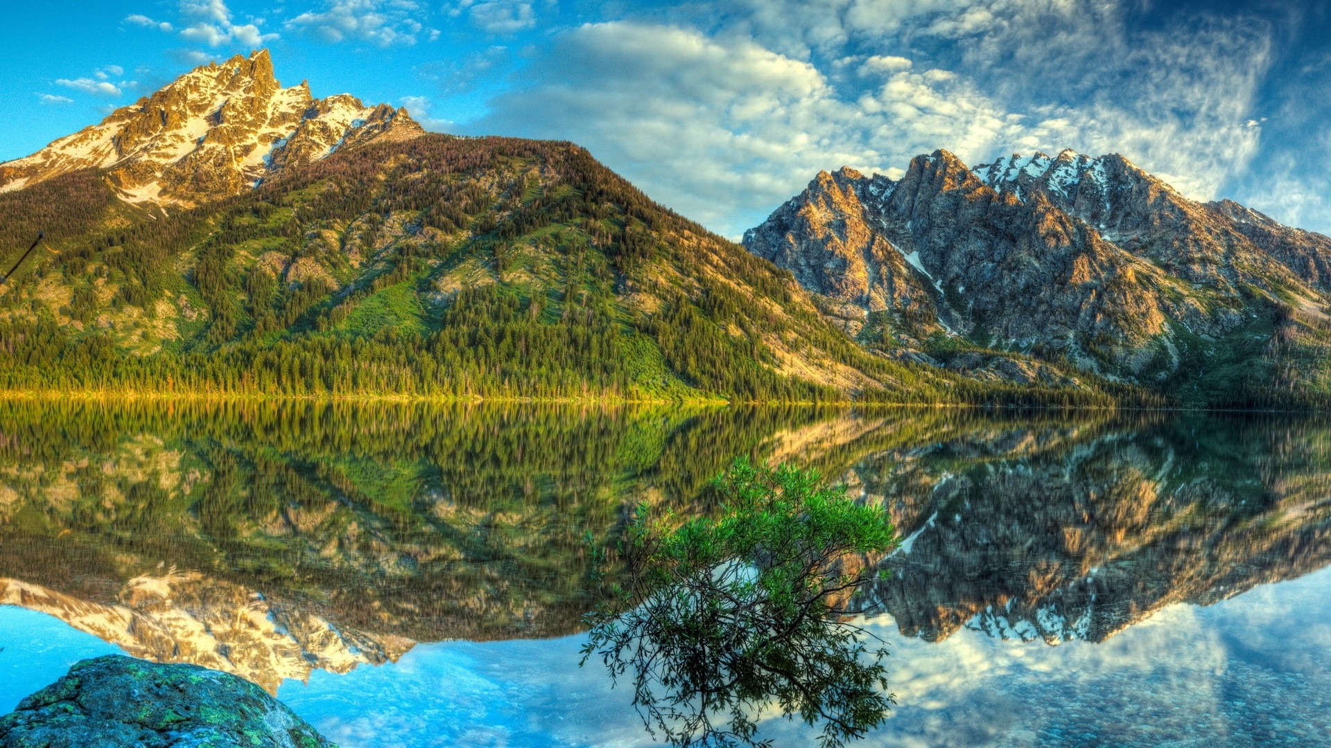 1 张 春季雪山湖倒影美景