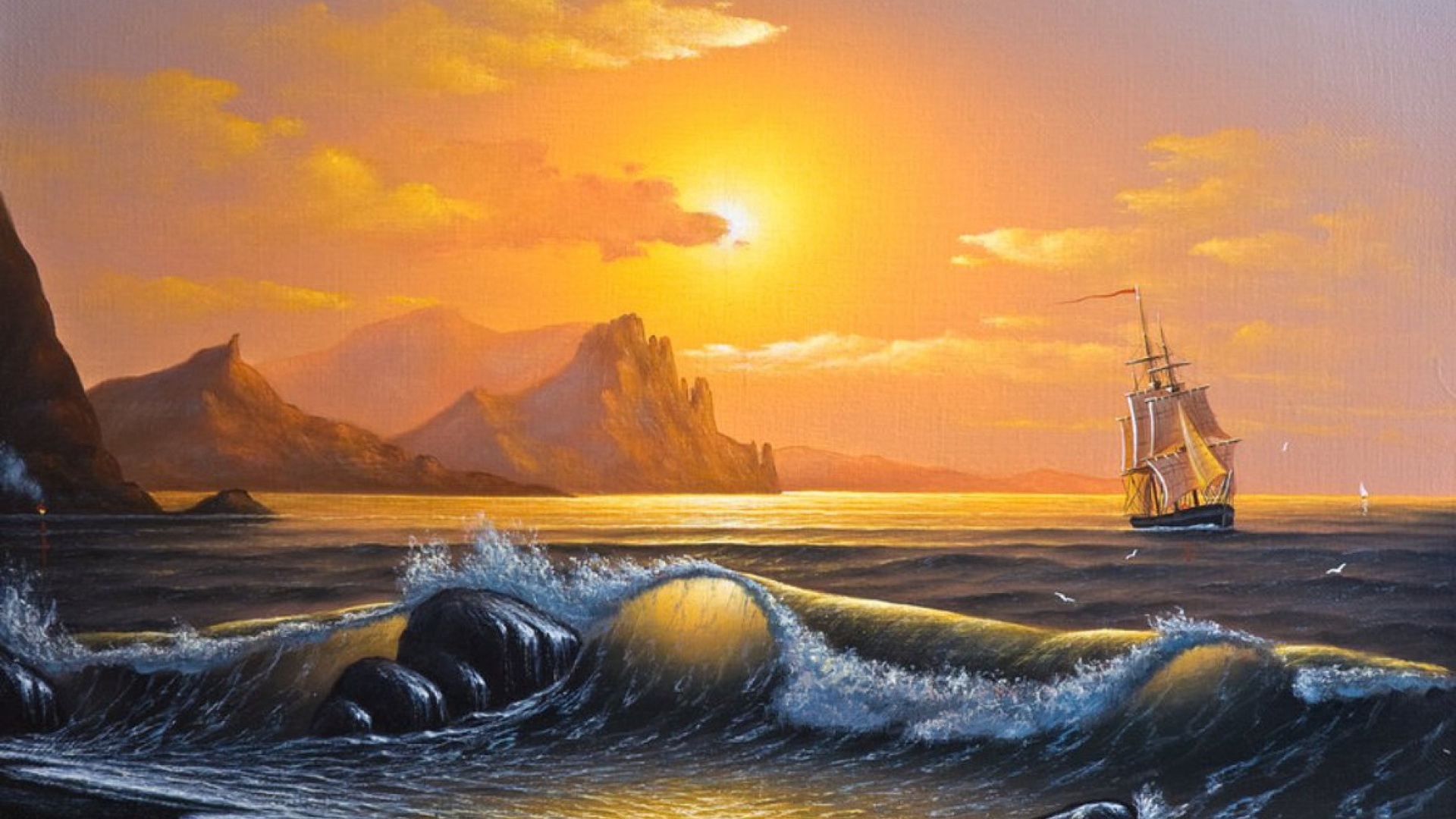 4 张 高清晰水墨油画海浪帆船壁纸