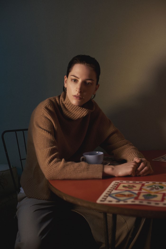 6 张 Bazaar芭莎时尚美国八月封面人像-加拿大模特Meghan Collison身穿针织品外套看上去超淑女