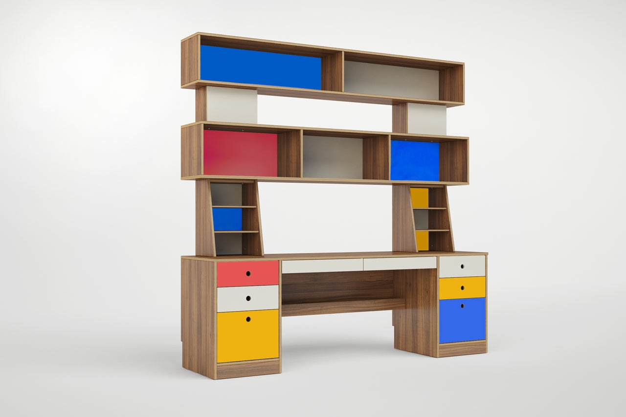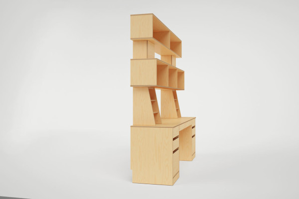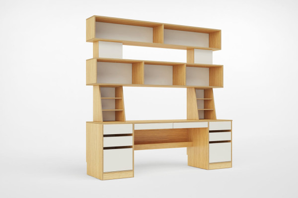 6 张 有大量储物空间的无规则书柜书桌