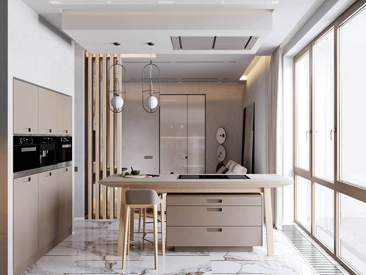 26 张 宁静的极简主义与有机奢华:来自波兰和沙特阿拉伯的2套现代中性内饰