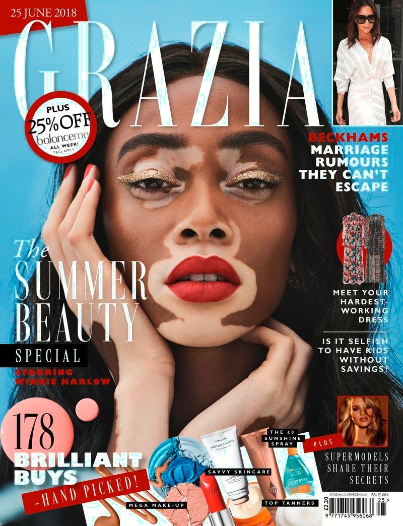 7 张 Grazia英国-温暖天气之美-大胆的红唇,闪闪发亮的眼影,充满活力的妆容