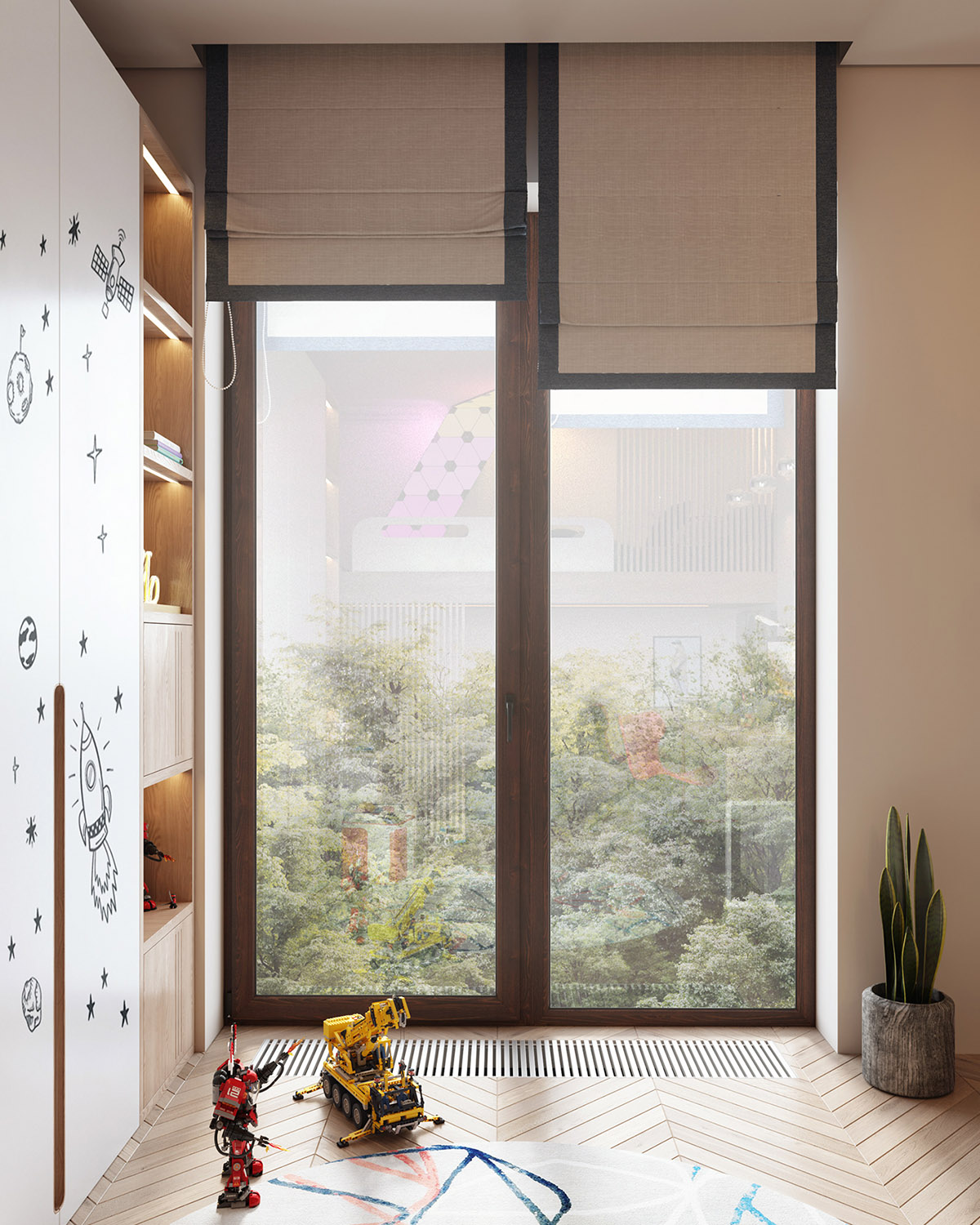 42 张 以绿色庭院为框架的灰木色调现代装饰
