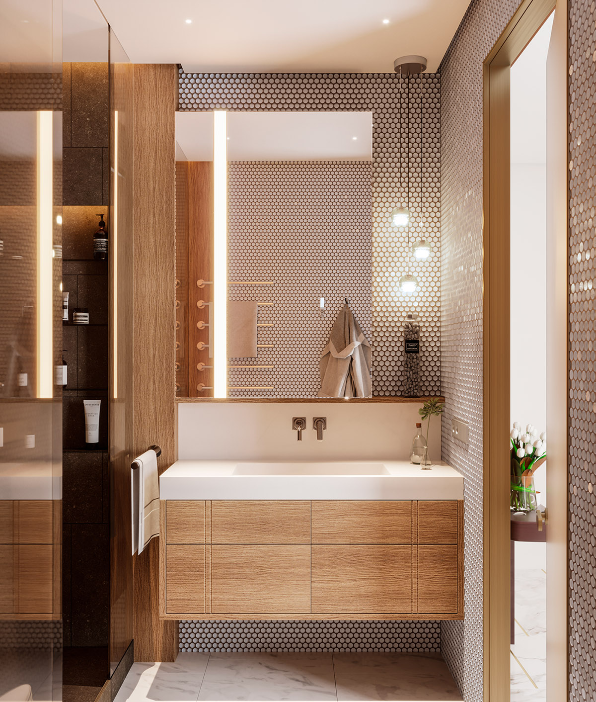 26 张 宁静的极简主义与有机奢华:来自波兰和沙特阿拉伯的2套现代中性内饰