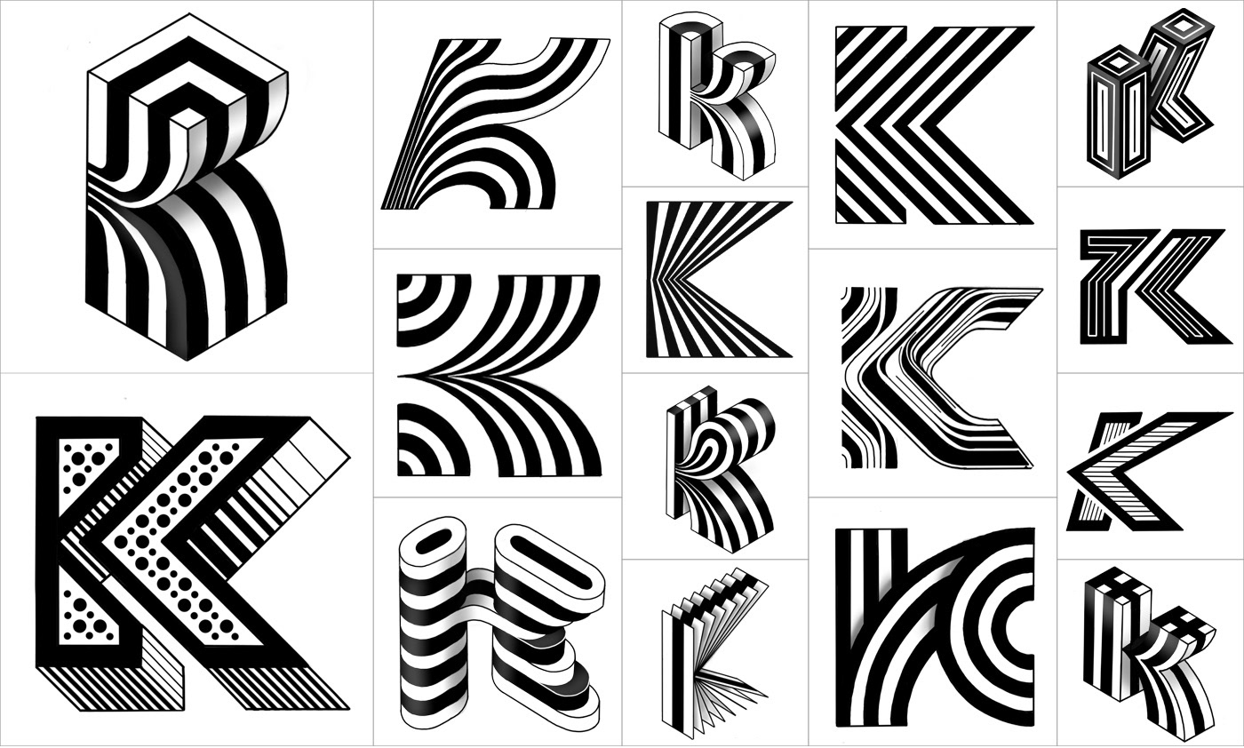 41 张 Layer typography黑白交替扭曲的字母与数字排版