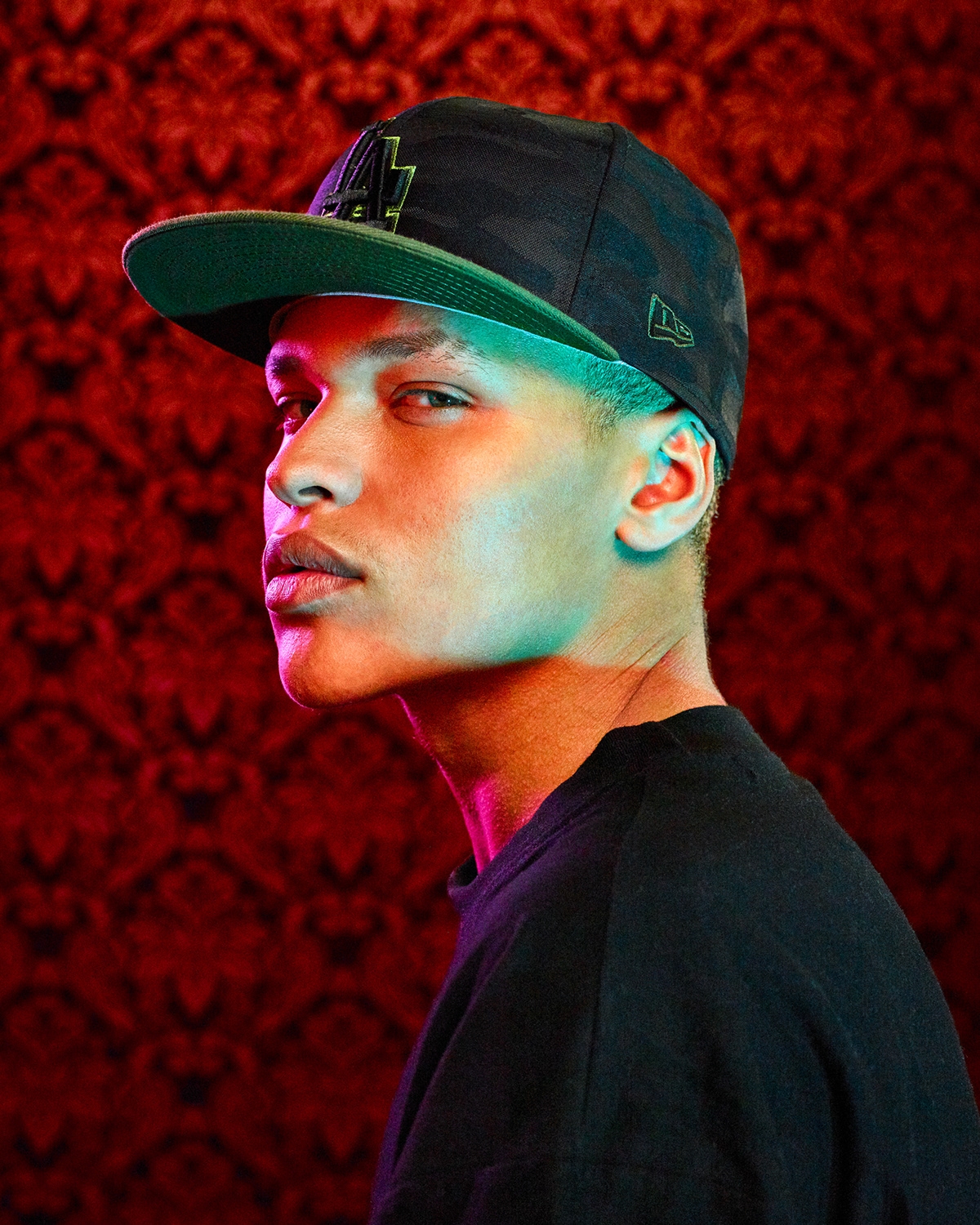 1 张 绿蓝光源下的中年中东男子