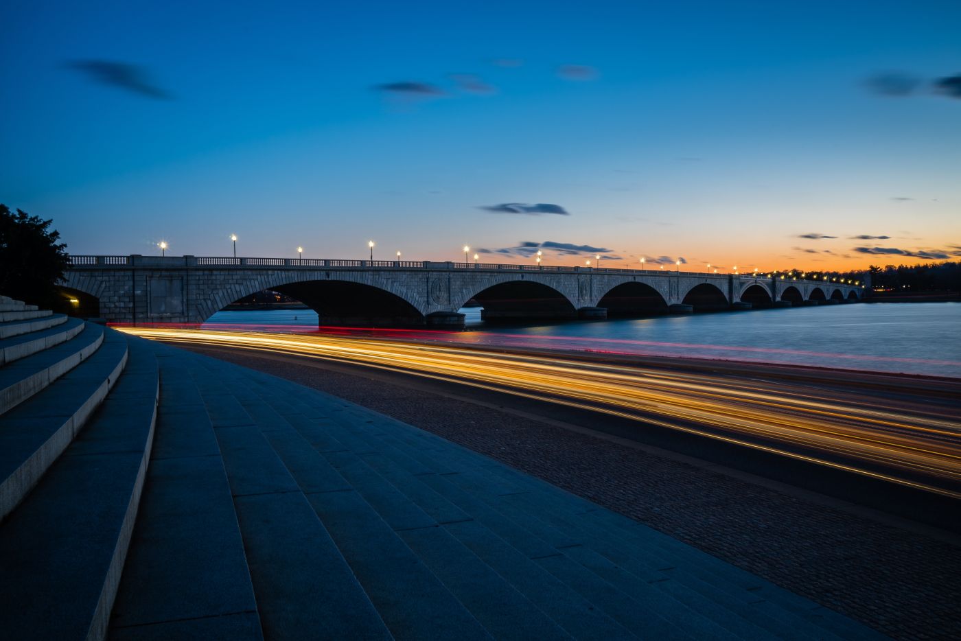 1 张 蓝紫拱桥夜景图