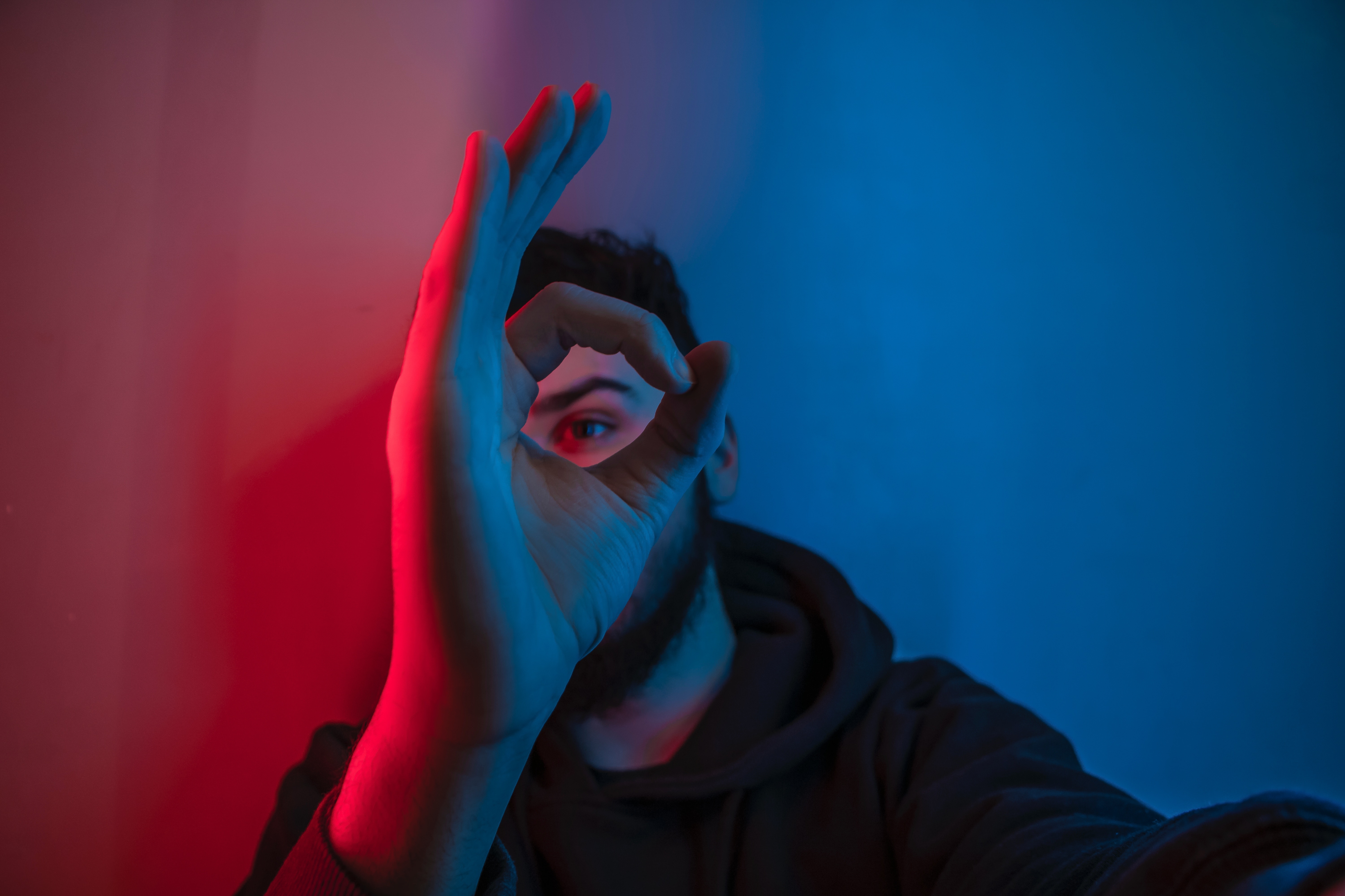1 张 红光下的卷发男子