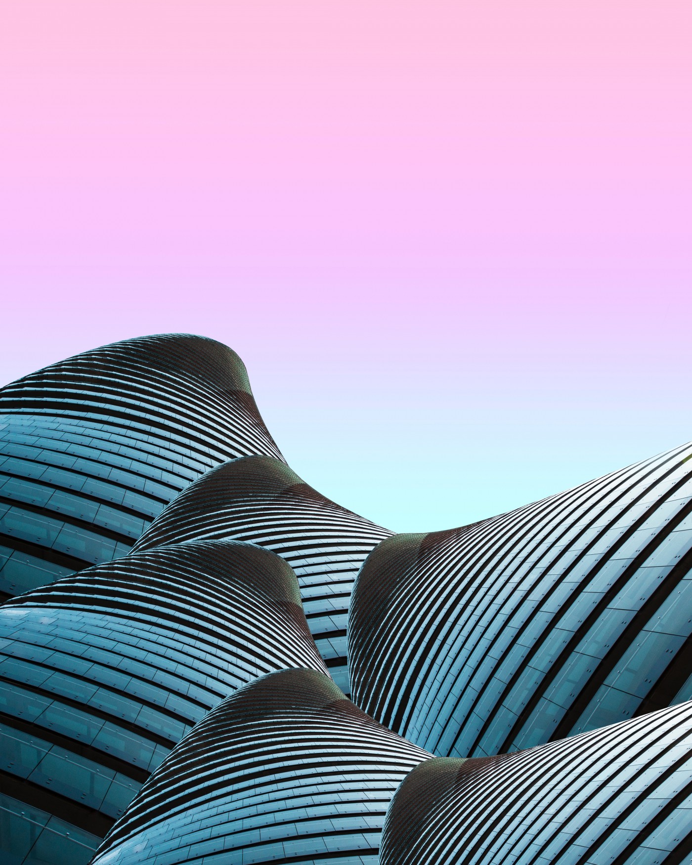 1 张 白色波浪装饰的写字楼外墙