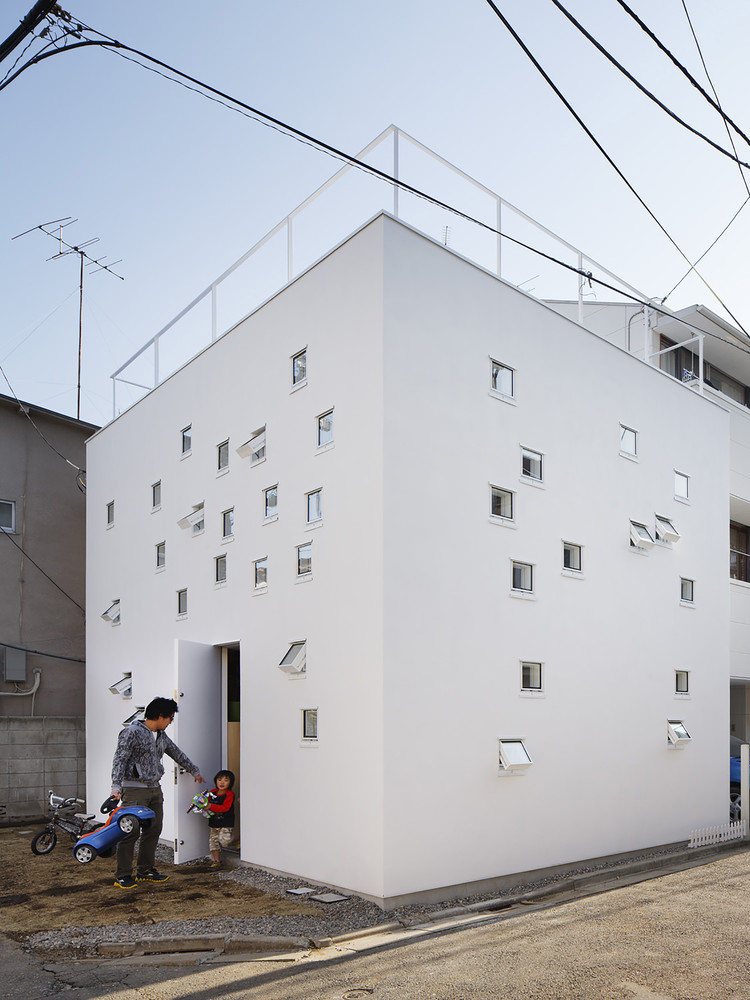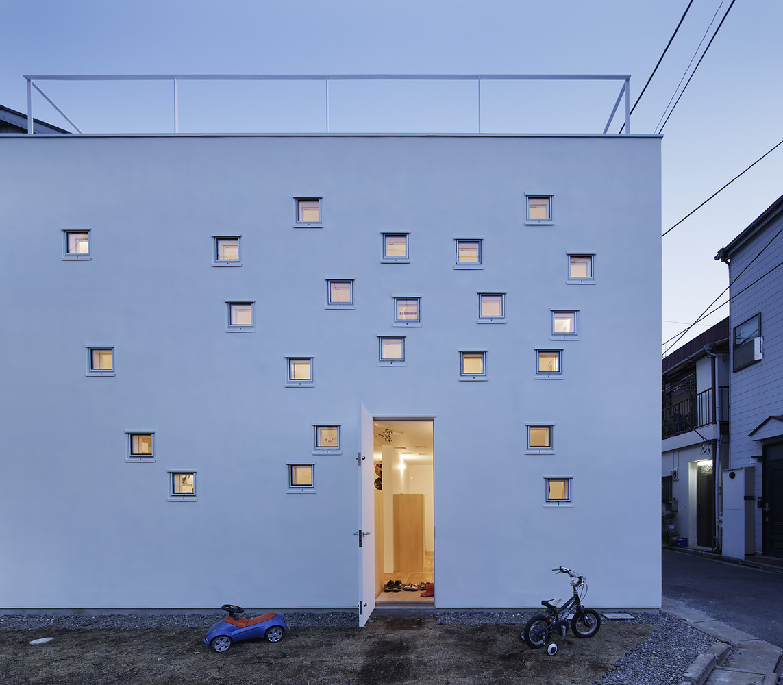 这座住宅就是一个简单的两层“盒子”:一层为两间小房间,二层是一个大开间,屋顶是上人屋面。 200毫米见方的小窗户随机分布在墙壁、地板及屋顶上。这是没有听力的父母与儿童之间的通信之口,他们可以通过地板上的小窗做手语而与对方沟通。通过这些小窗,孩子间可以互相交谈,家长与孩子间也可以用手语进行交流。
