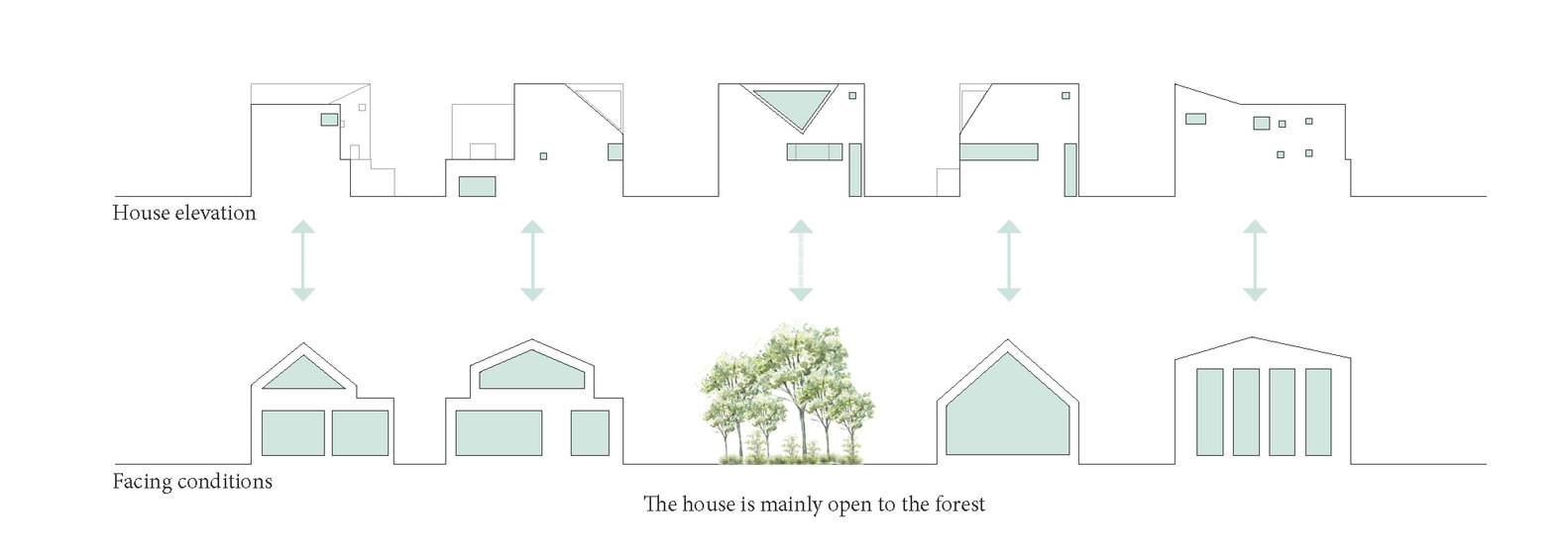 作为建筑师,我们必须提出一个创意,不仅提供足够的隐私还要保证基本需求。我们在屋内设计了“小庭院”,作为室内与室外的中间空间。我们还创建了一个缓冲区,来将边界柔化。每个庭院与室外的关系都不尽相同。有些可以侧面打开,有些带有天窗,还有些两种都有。