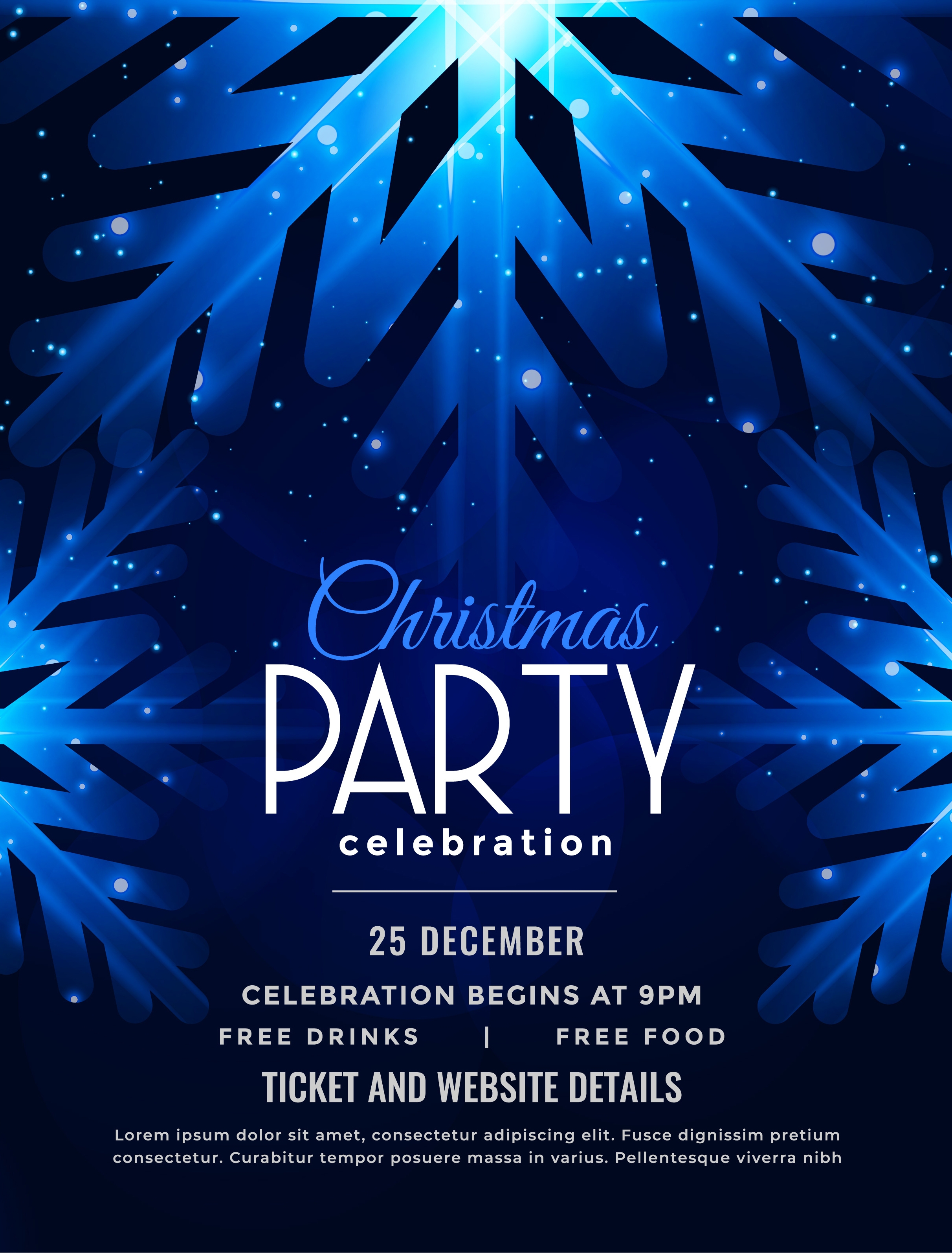1 张 圣诞晚会蓝色雪花传单模板设计