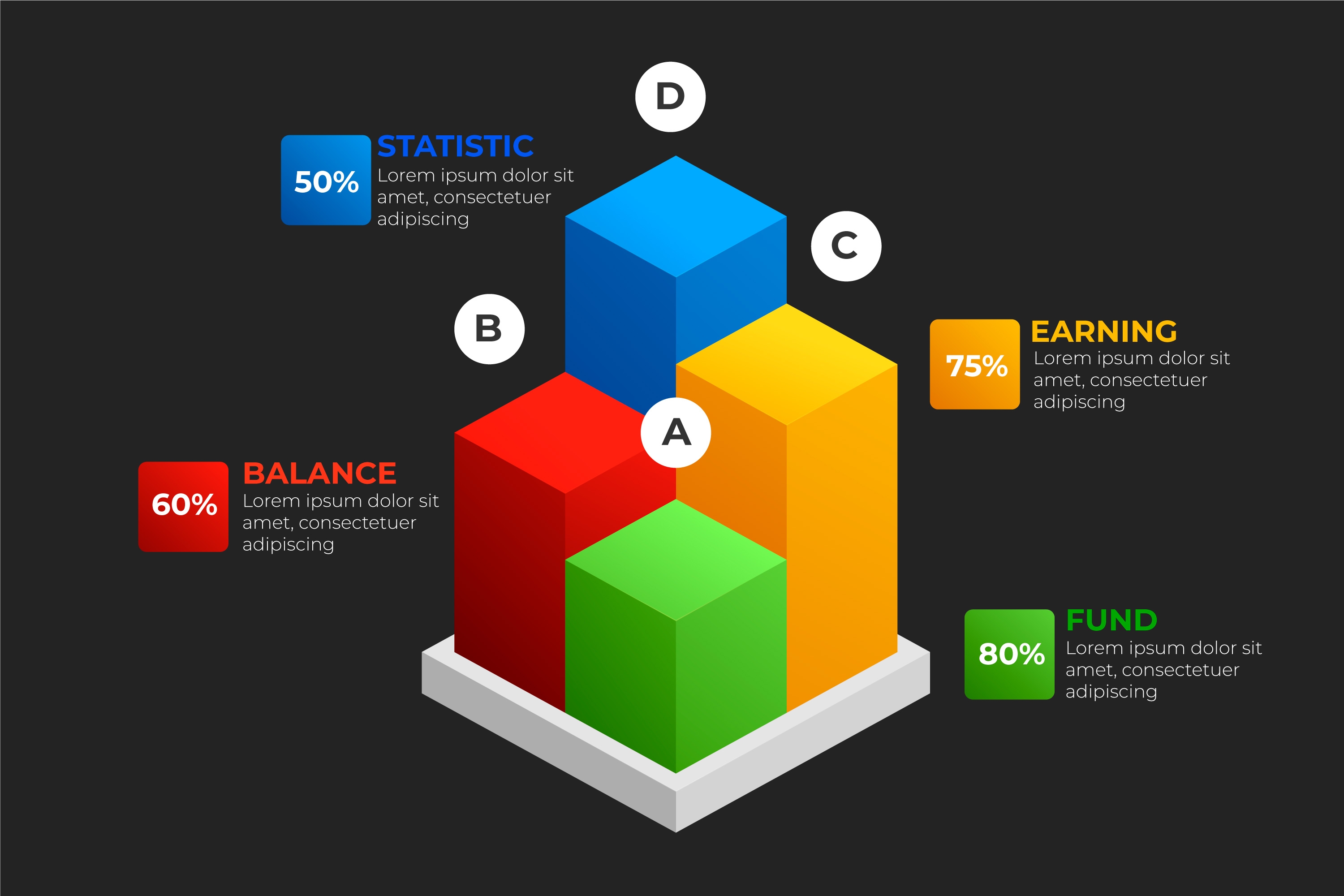 1 张 多彩立体正方体数字图表下载
