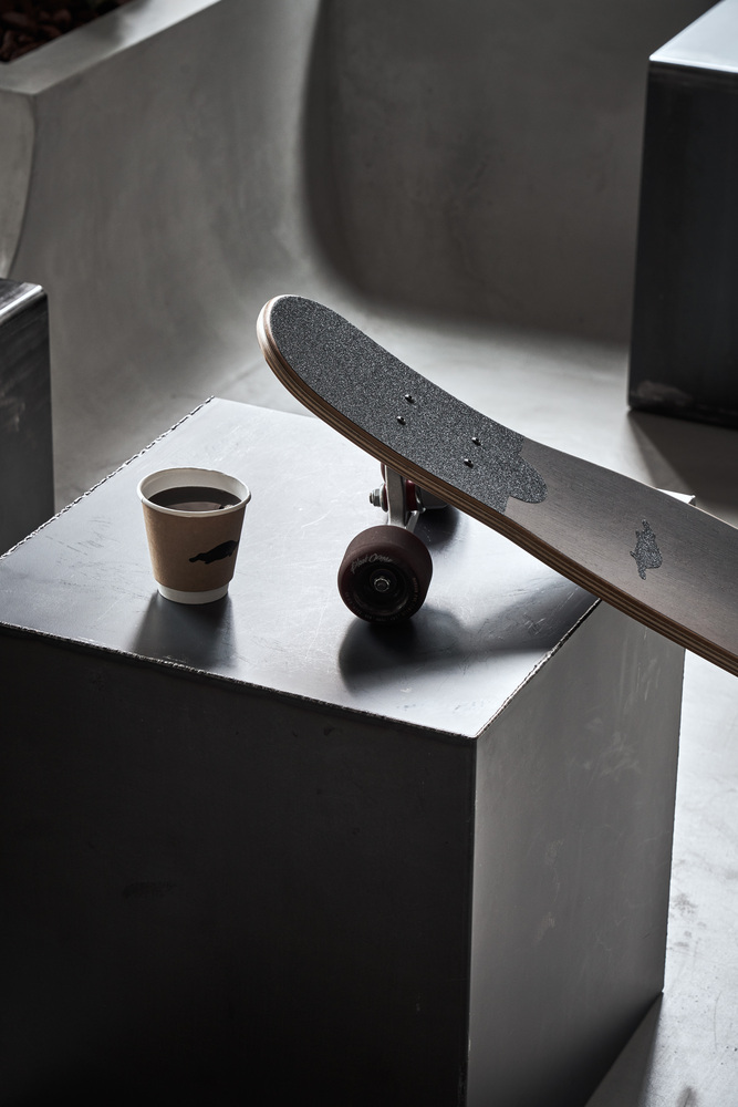 人,城市以及咖啡店是现代生活中紧密的一环,通过由滑板的生活风格,我们由旅程,享受生活的概念出发,呈现滑板的地景与公路风情。一根根风化的木柱与仙人掌述说着「城市与人,人与咖啡,咖啡长板,长板与人」之间的简化
