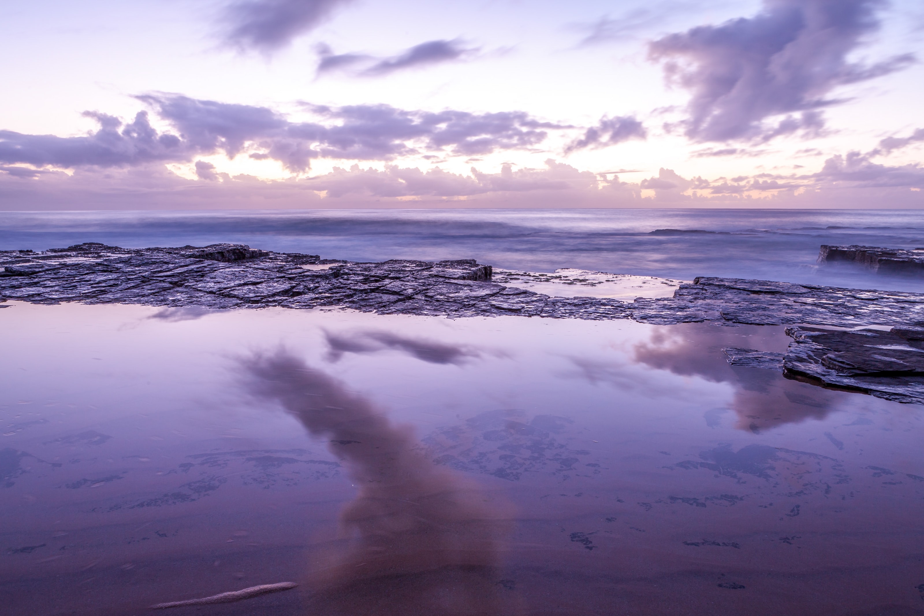 1 张 紫色天空下的海洋俏丽岩石