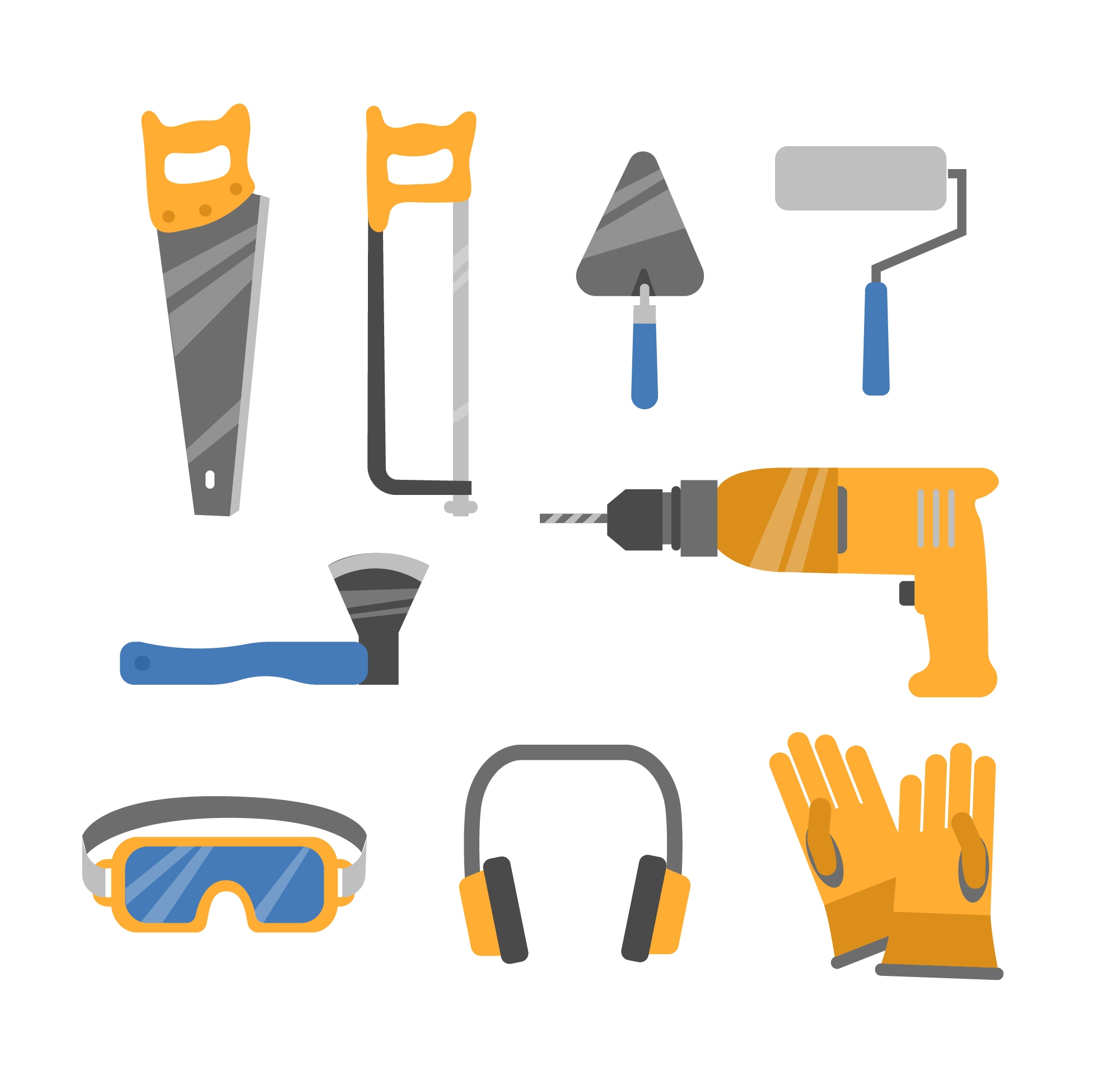 1 张 逼真的卡通装修工人工具素材下载
