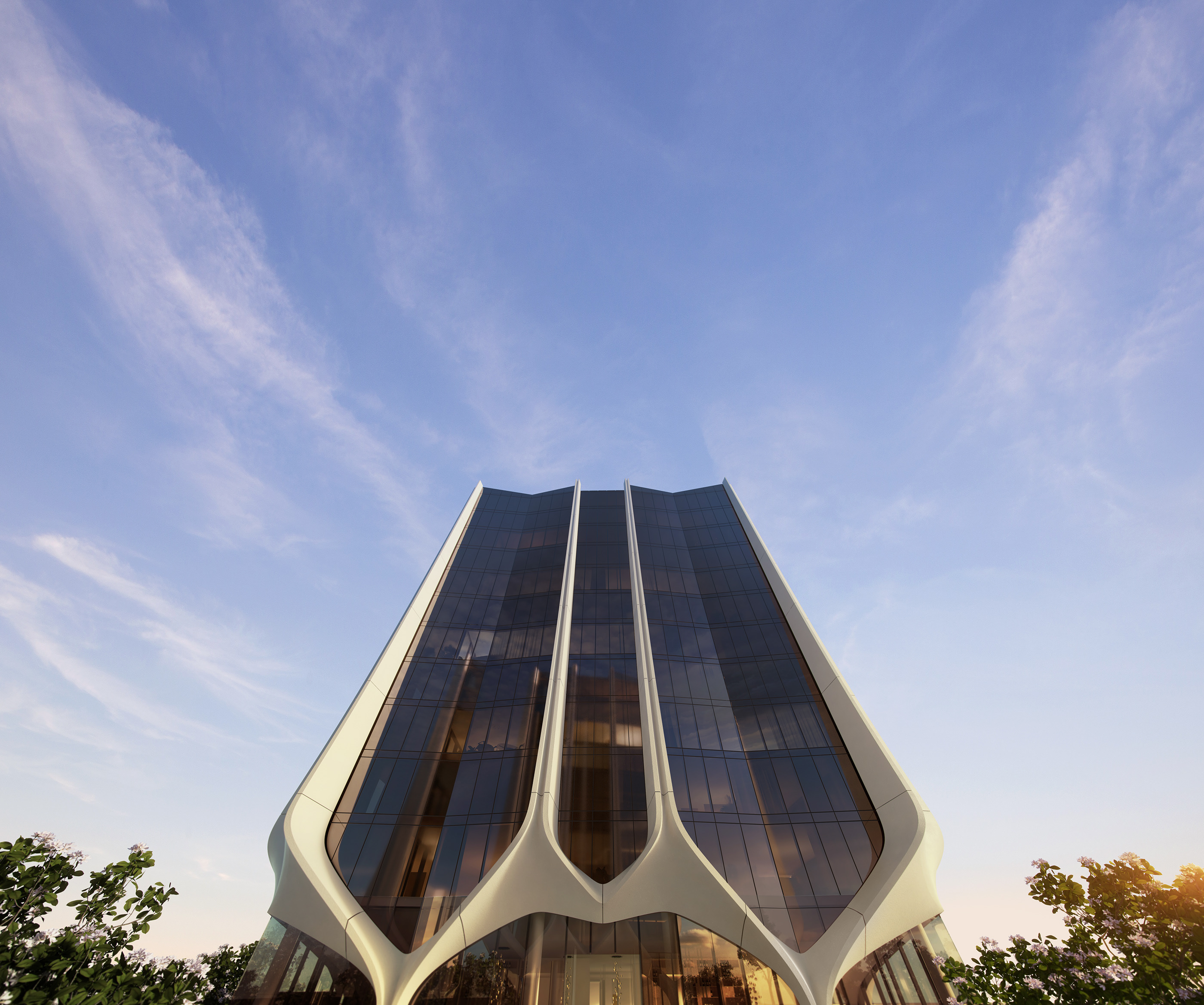 1 张 白色波浪装饰的写字楼外墙