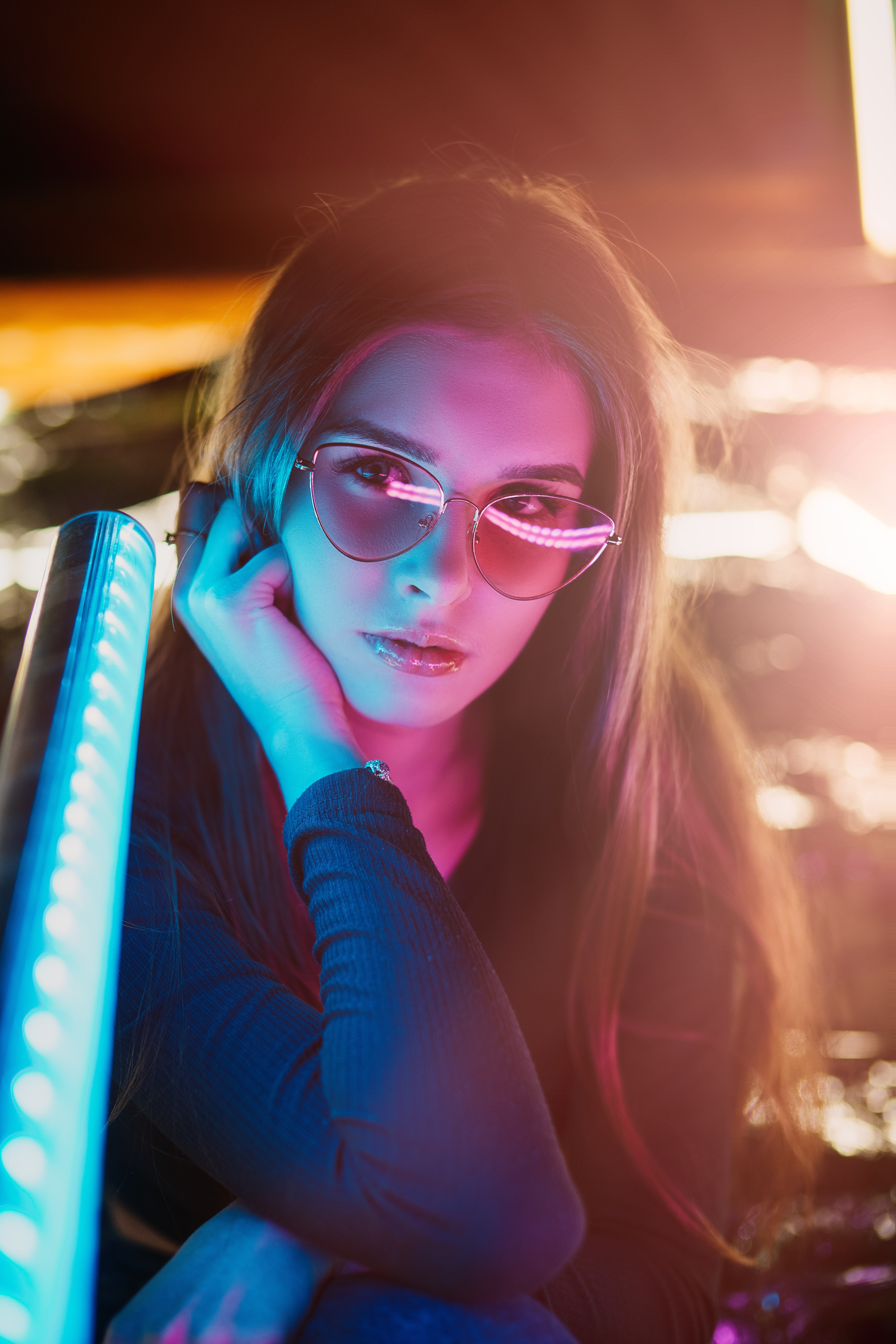 1 张 红色灯光下的妇女人像