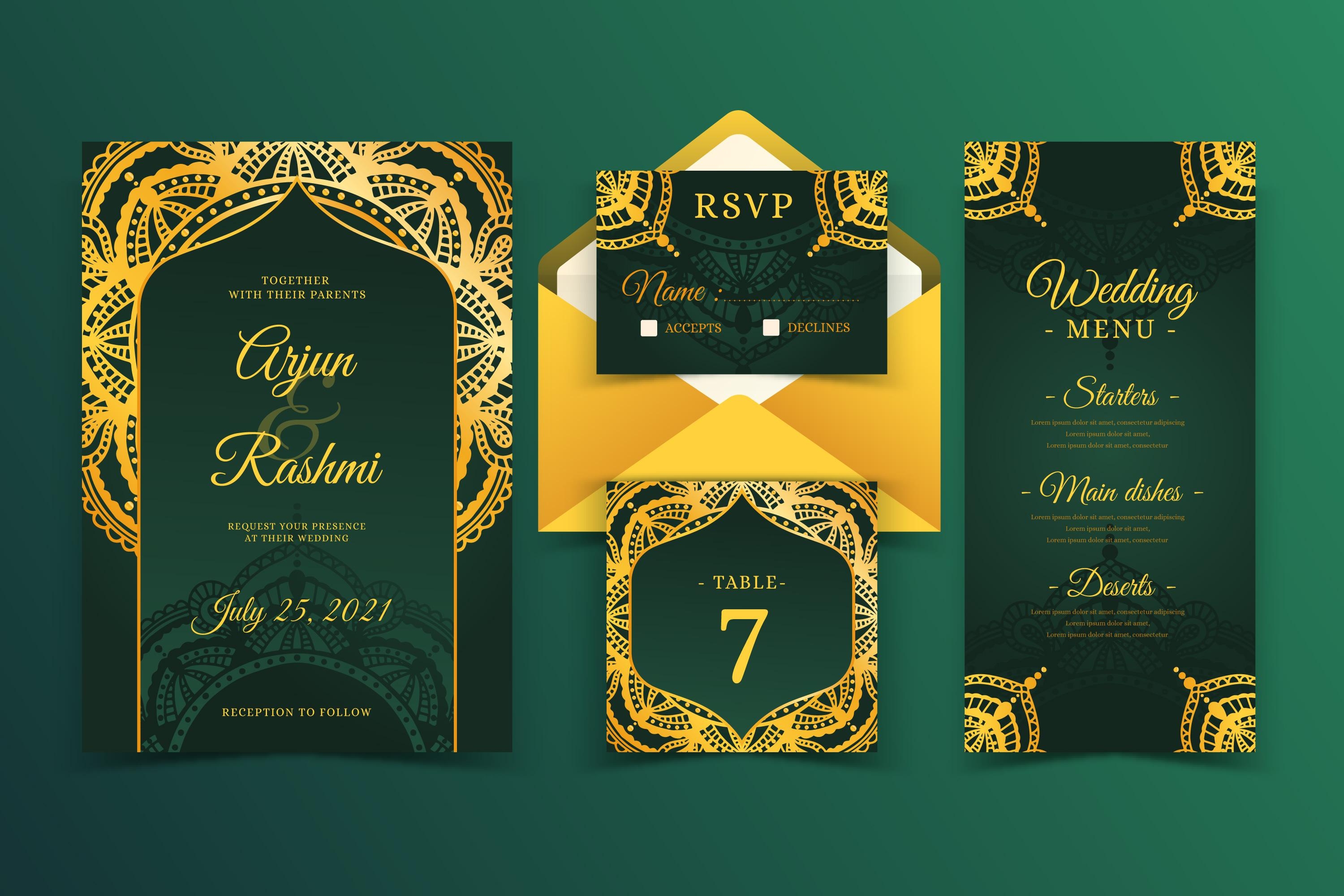 1 张 欧美金色豪华婚礼请柬设计套装