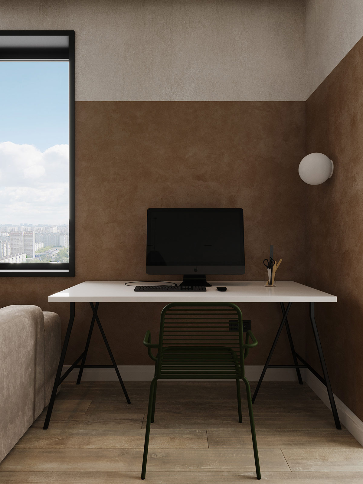41 张 结合玻璃墙房间的混凝土单色内饰