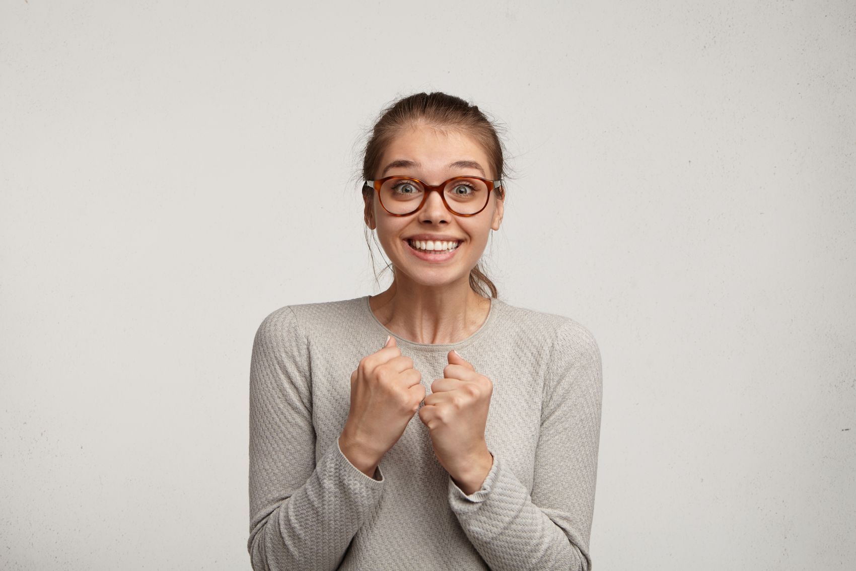 1 张 祝贺手势的眼镜女郎