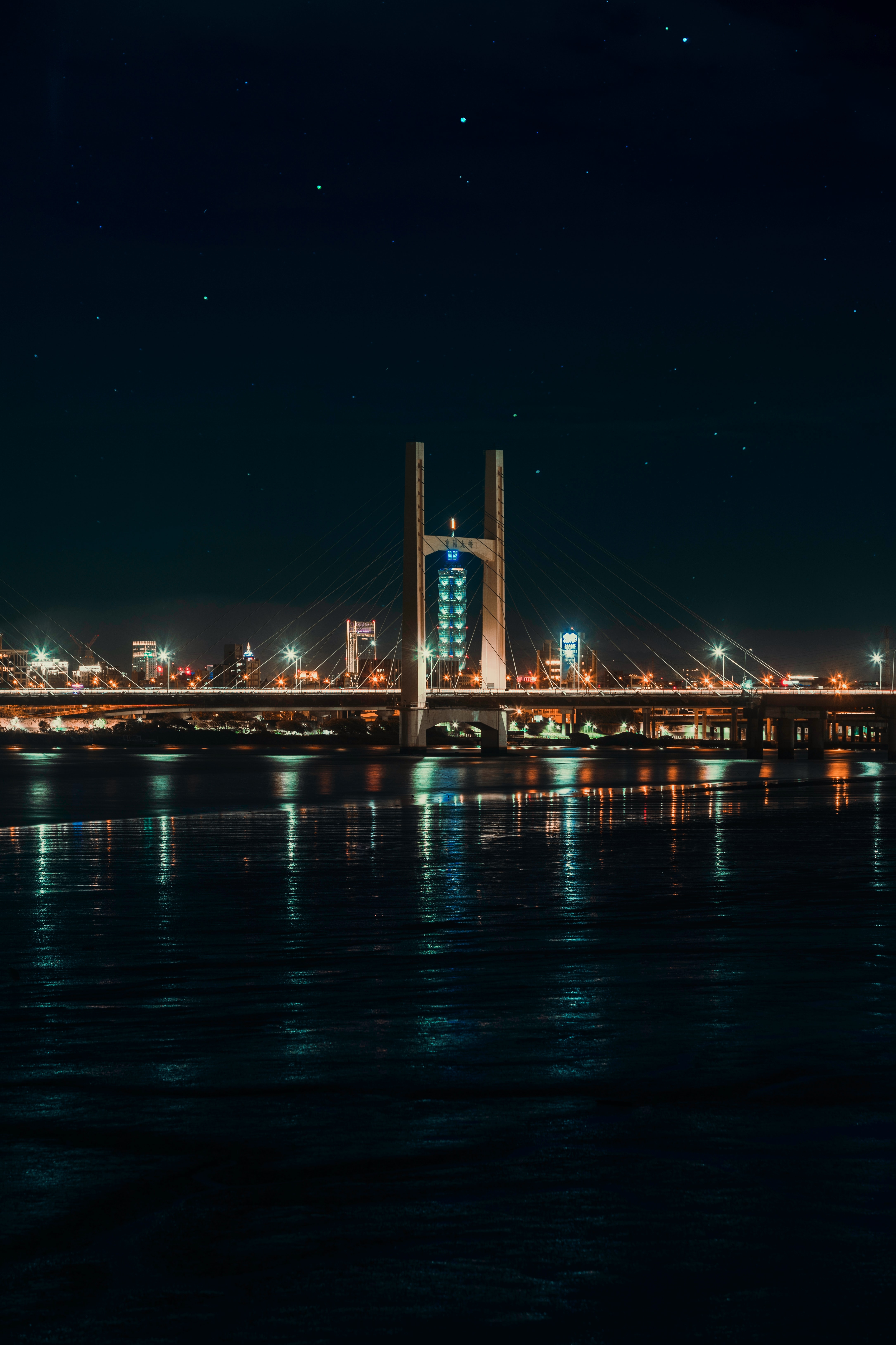 1 张 城市斜拉索大桥桥梁江景夜景图片-璀璨夜景让人流连忘返