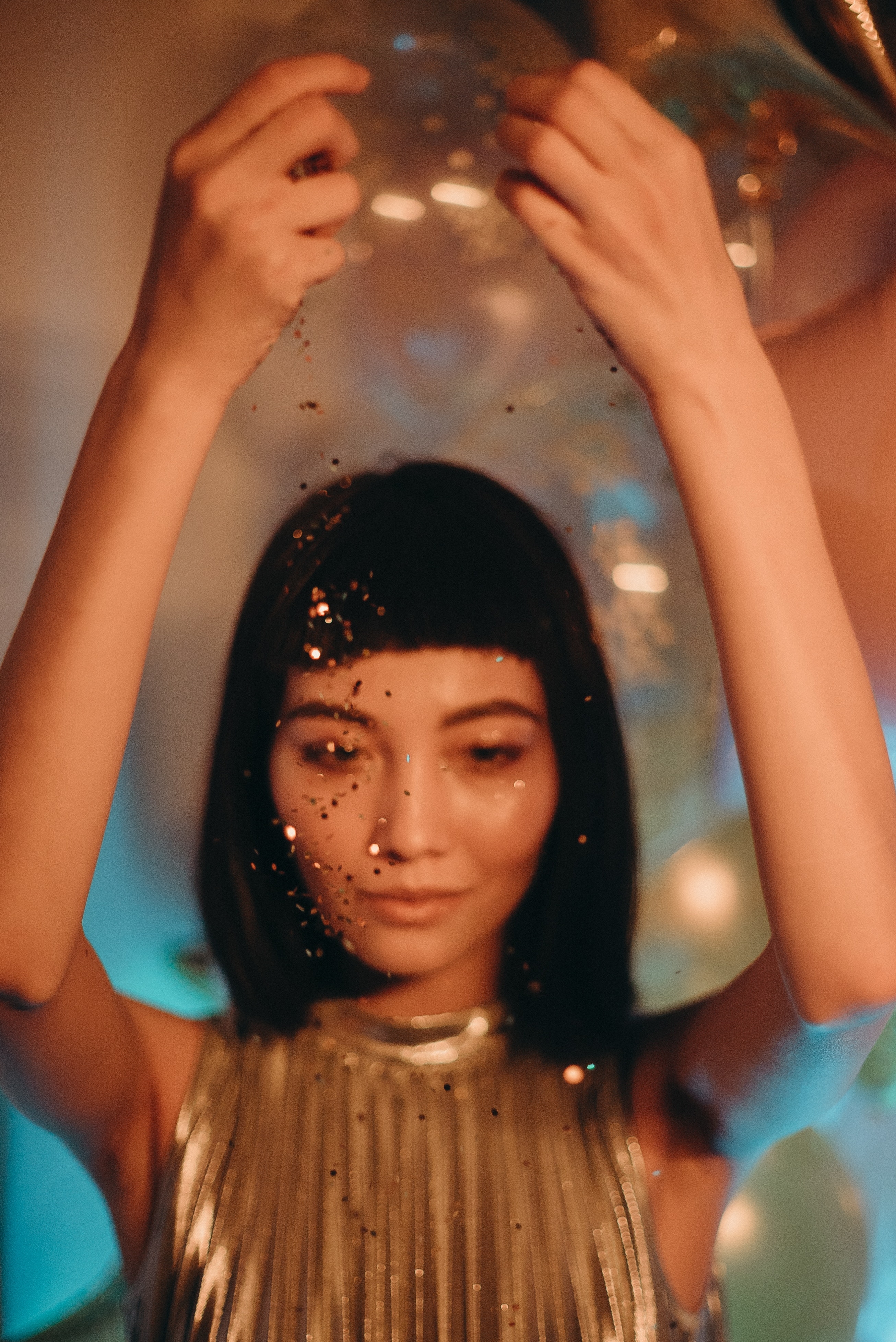 1 张 吹金色纸屑的卷发女子
