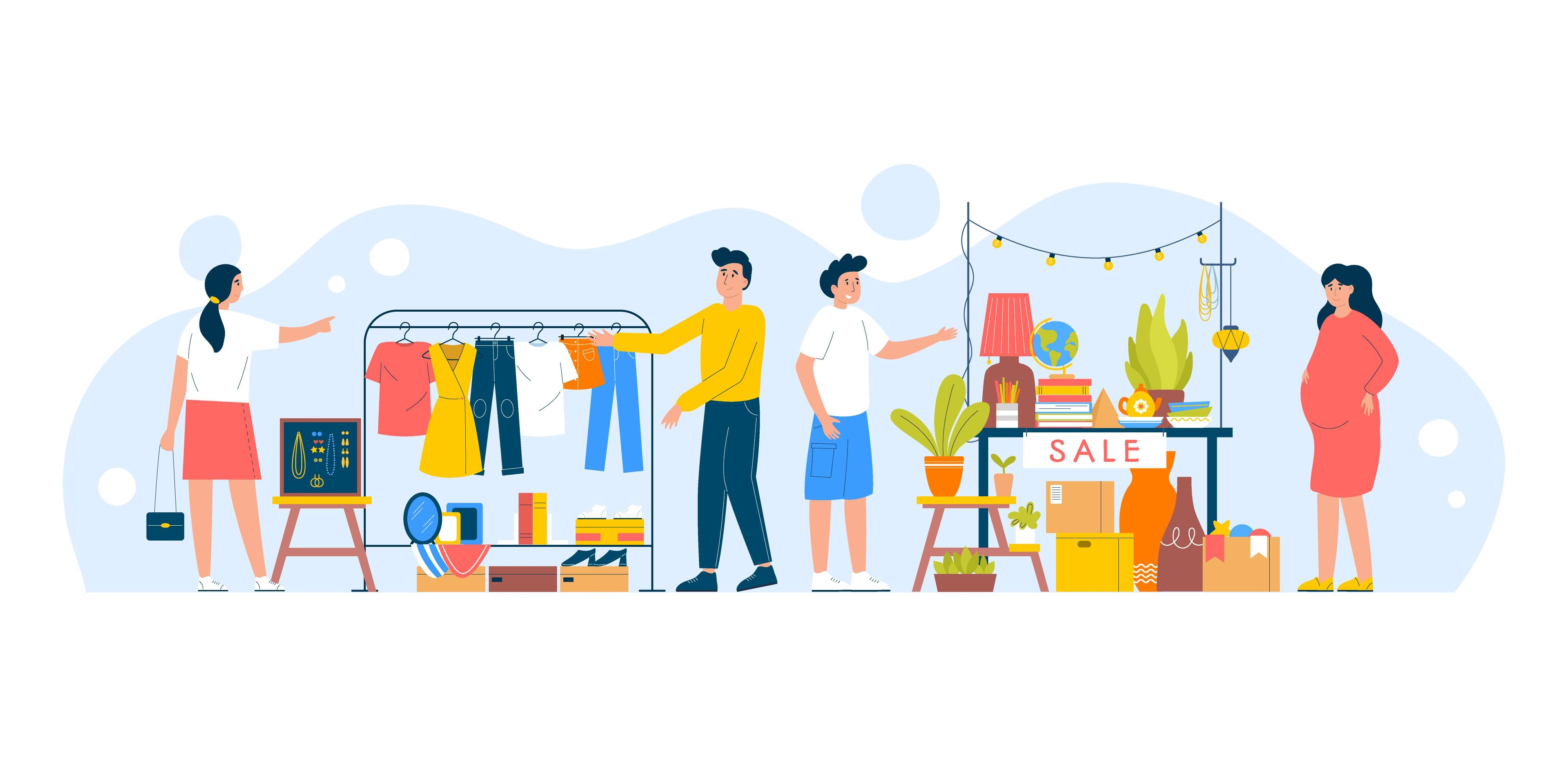 1 张 街边出售衣服的卡通素材