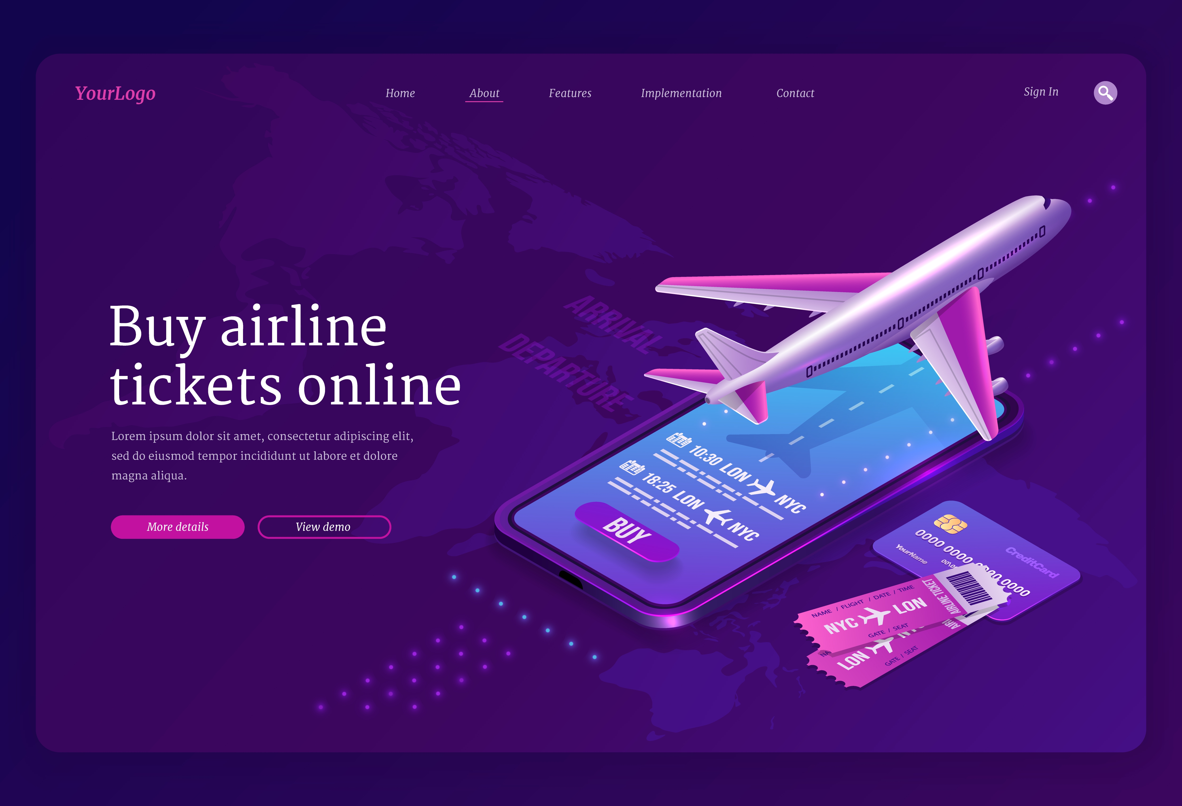 1 张 卡通紫色航空航班旅行素材