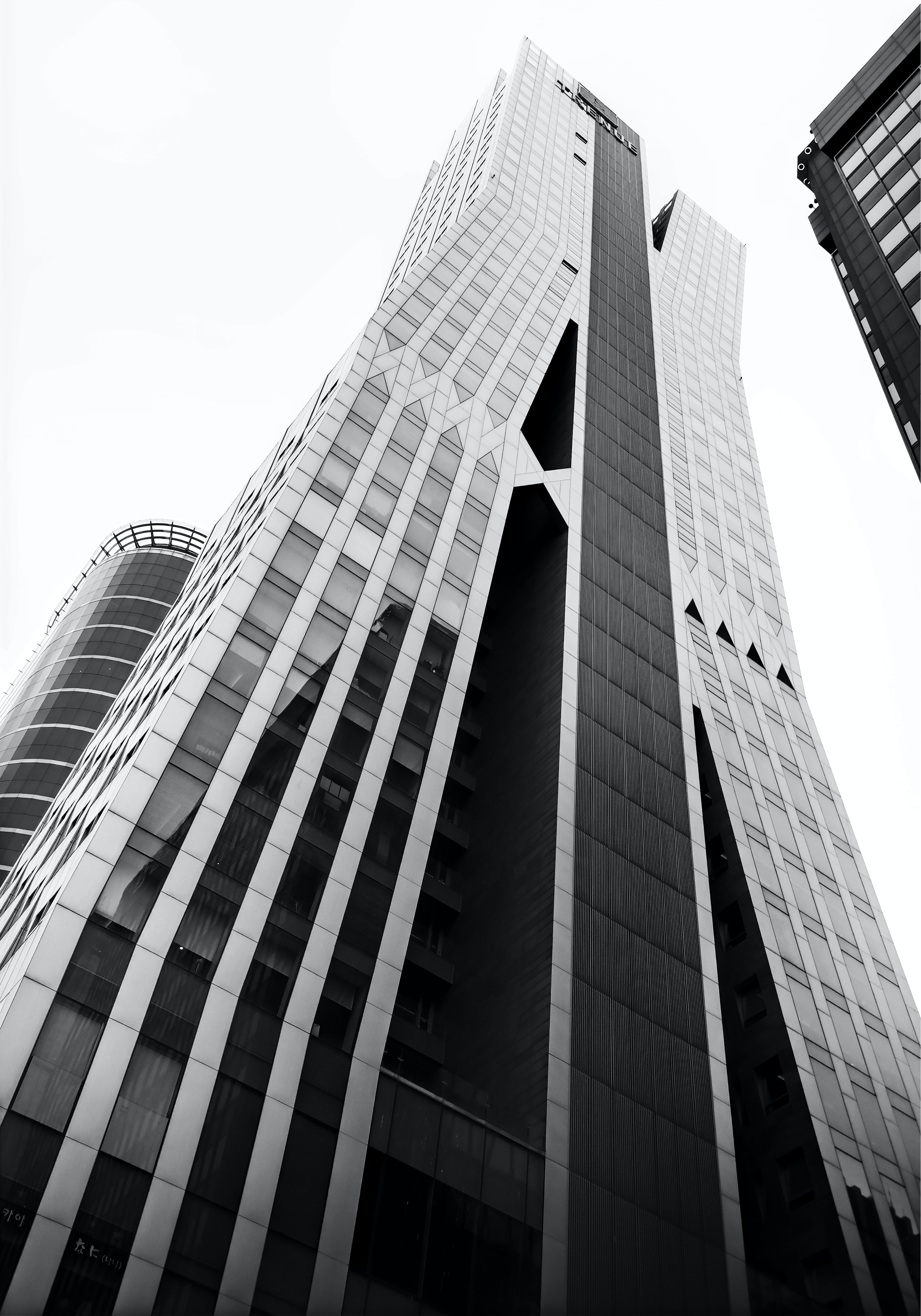 1 张 仰拍的条状建筑黑白图片