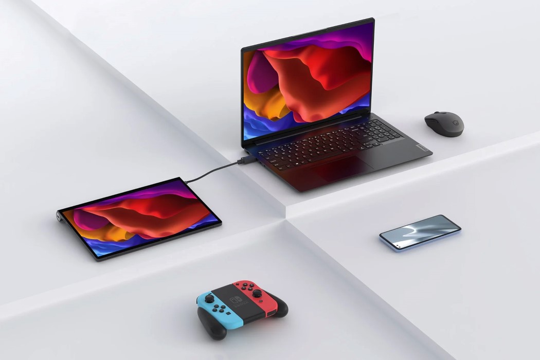 3 张 自带支架可兼作外接显示器的联想 YOGA Pad Pro 平板电脑