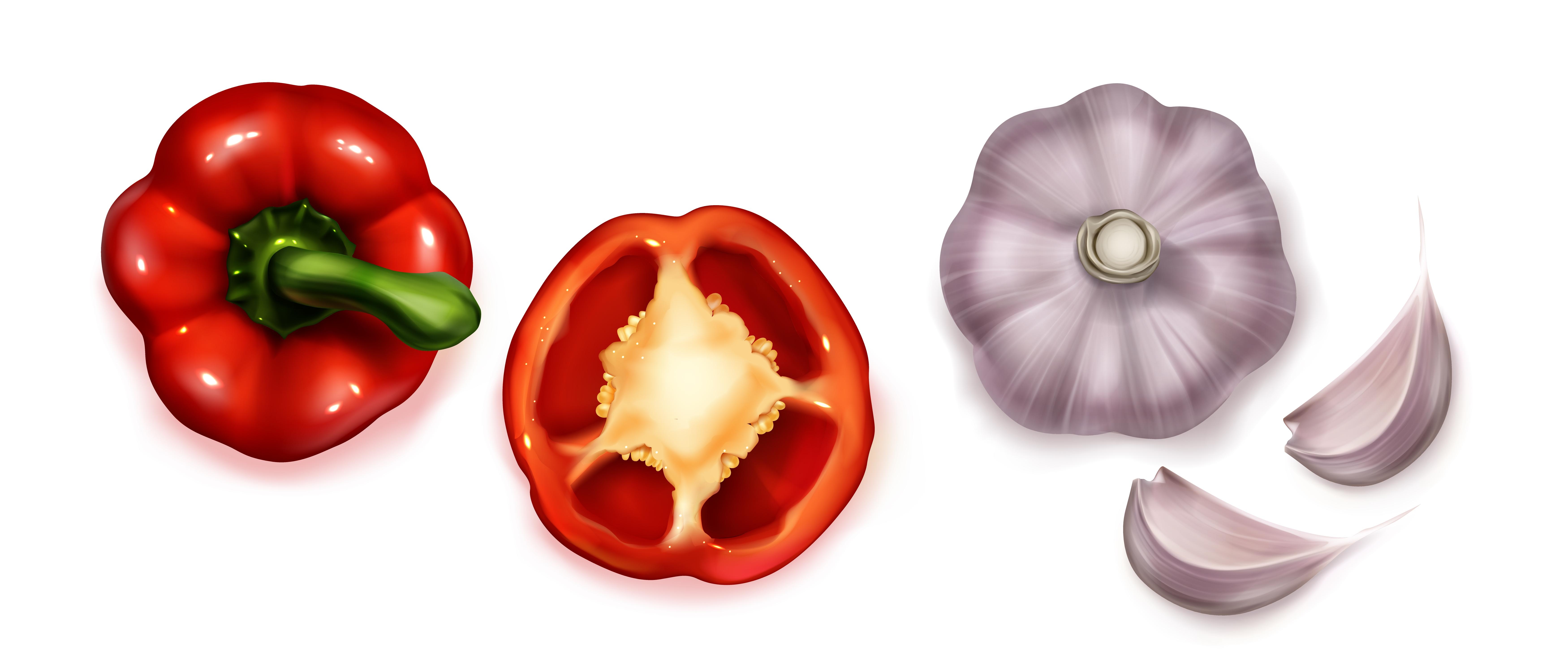 1 张 逼真新鲜的灯笼辣椒与大蒜素材下载