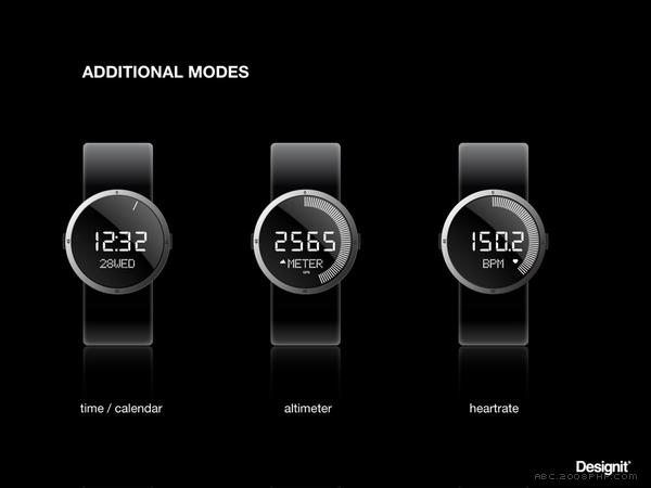 6 张 Bend Watch-便携智能手表设备设计-如果屏幕未被激活,手表有一个按钮,按一下可以激活屏幕,可以显示日期,而不是时间 : 947946