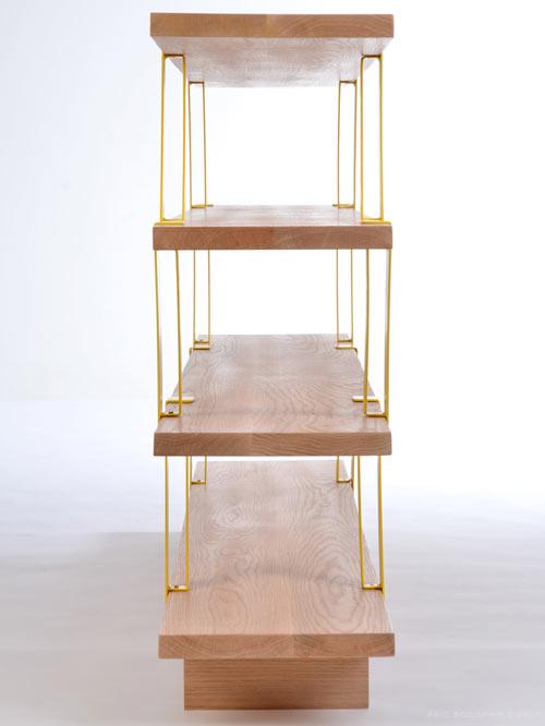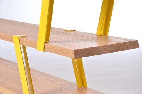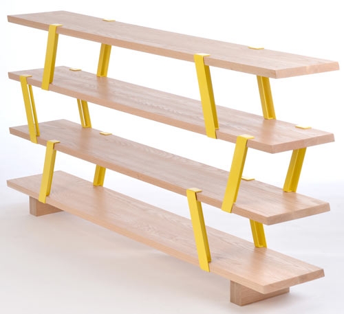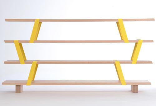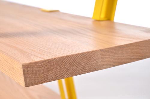 Montreal-based designer Olivier Desrochers created the Méo Shelf, a shelving system that resembles scaffolding. The modular system uses solid oak planks that are connected together with brightly colored steel supports that sit at an angle. Between the angle of the brackets and the color (you get to choose!), the simple piece has loads of visual interest and would look good just about anywhere.