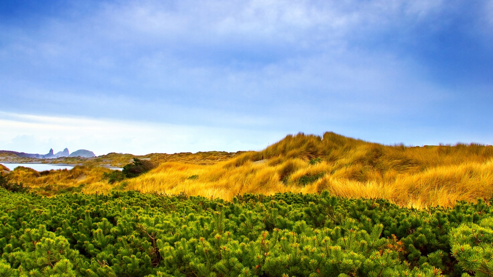 1 张 高山植被-高清晰松树林与黄色草地壁纸 : 918485