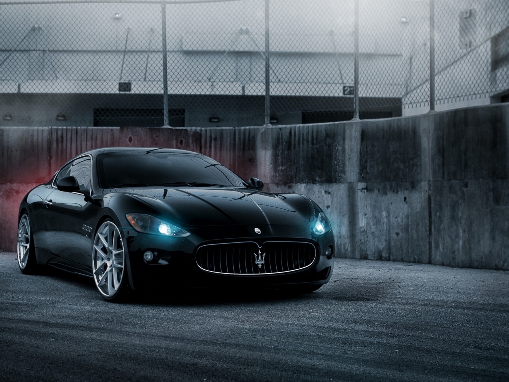 1 张 开大灯的黑色玛莎拉蒂跑车壁纸 : 923629
