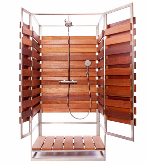 4 张 一种现代的木条纹pre-fab室外淋浴柜 : 915785