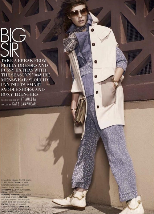 7 张 俏皮的金发碧眼的刘海美人-ELLE世界时装之苑瑞典,一身宽腿裤,双排扣夹克,光泽的皮革和印花裤 : 921554