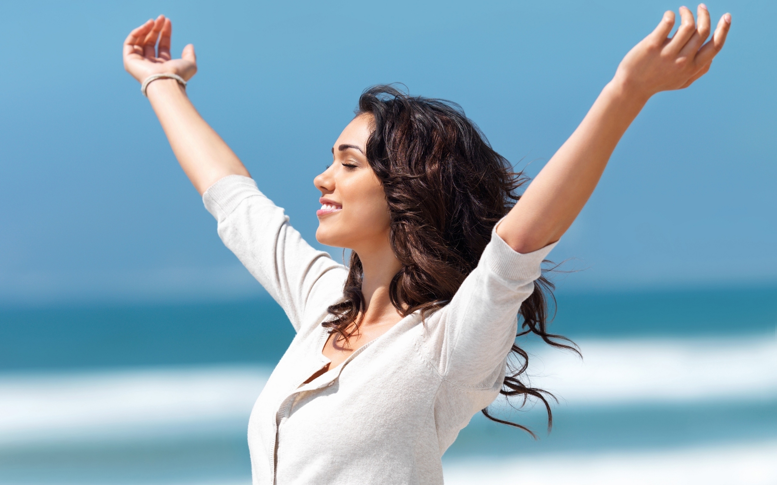 1 张 高清晰放松享受太阳光拥抱海风的卷发美女 : 919407