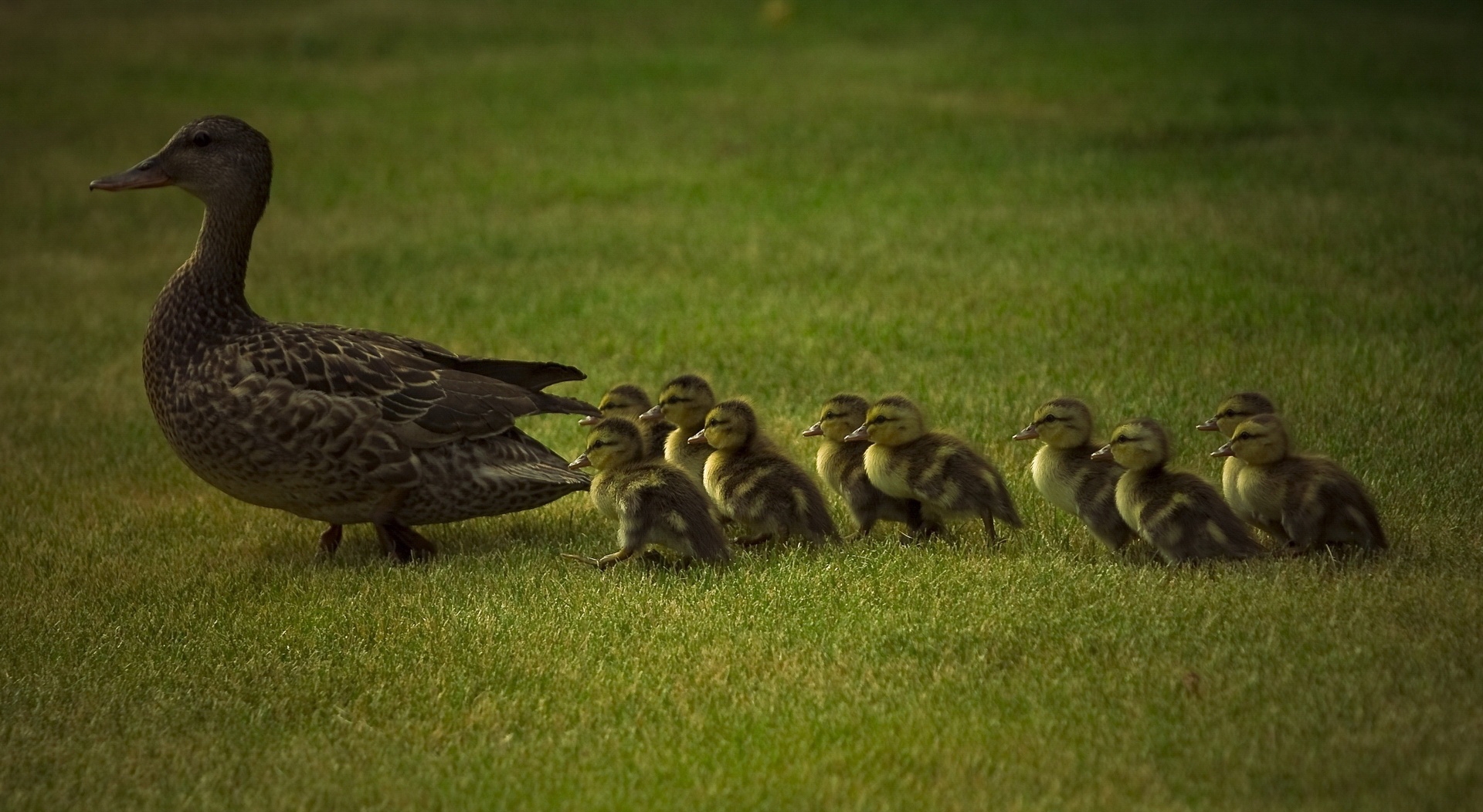 1 张 走在草地上排列整齐的鸭妈妈与带宝宝 : 922526