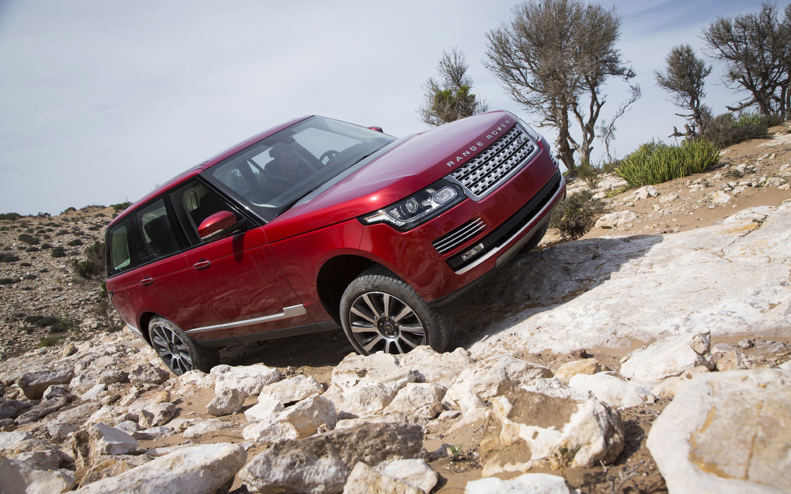 1 张 摩洛哥红岩石上颠簸的红色路虎揽胜越野车壁纸 : 923484