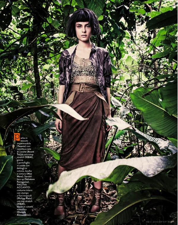 7 张 迷彩别致世界-Grazia格拉齐亚意大利-纯自然的女孩,模特身穿的服饰印花和图案灵感来自植物世界 : 925209