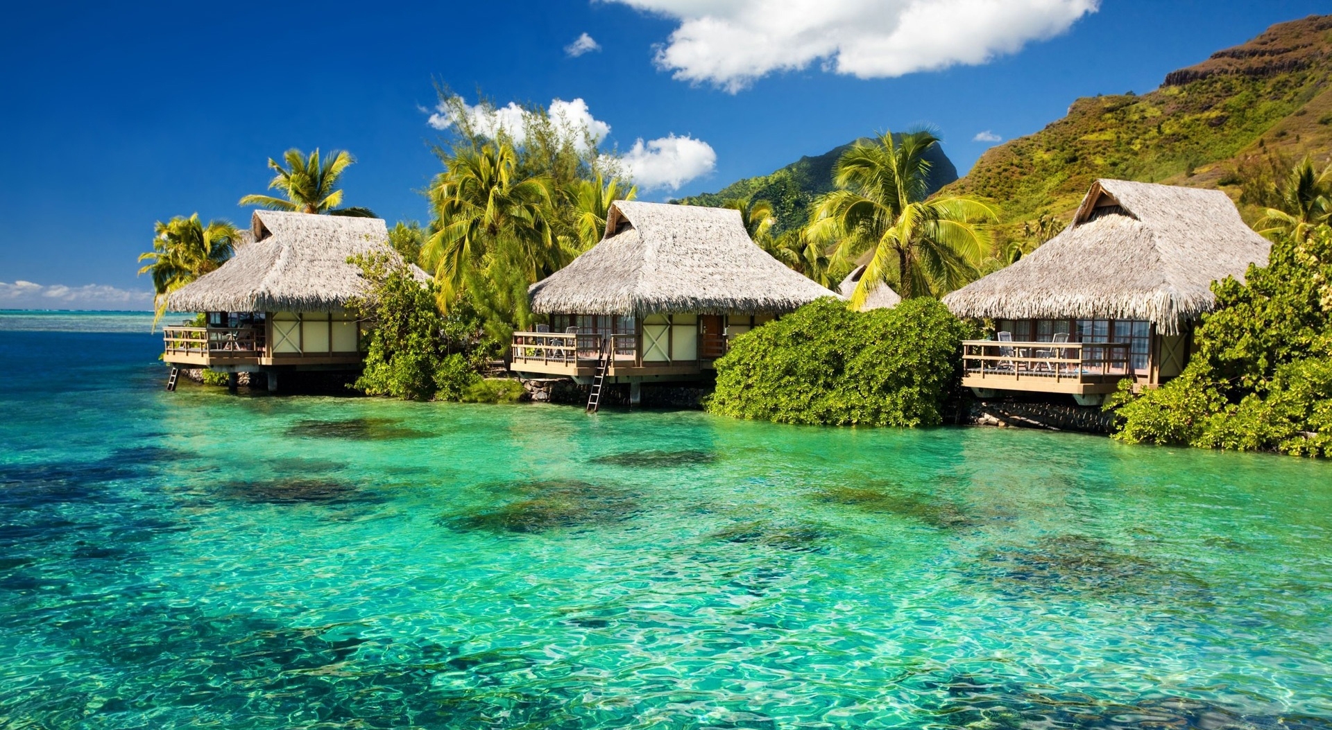 1 张 高清晰法国波利尼西亚上礁的平房壁纸 : 918239