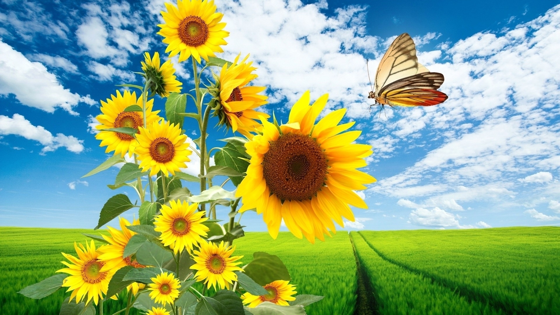 1 张 高清晰盛开的sunflowers向日葵壁纸 : 912456