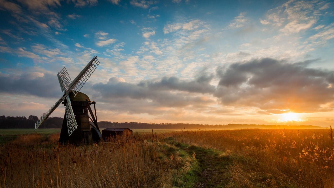1 张 高清晰绿色麦田山风车壁纸 : 942995