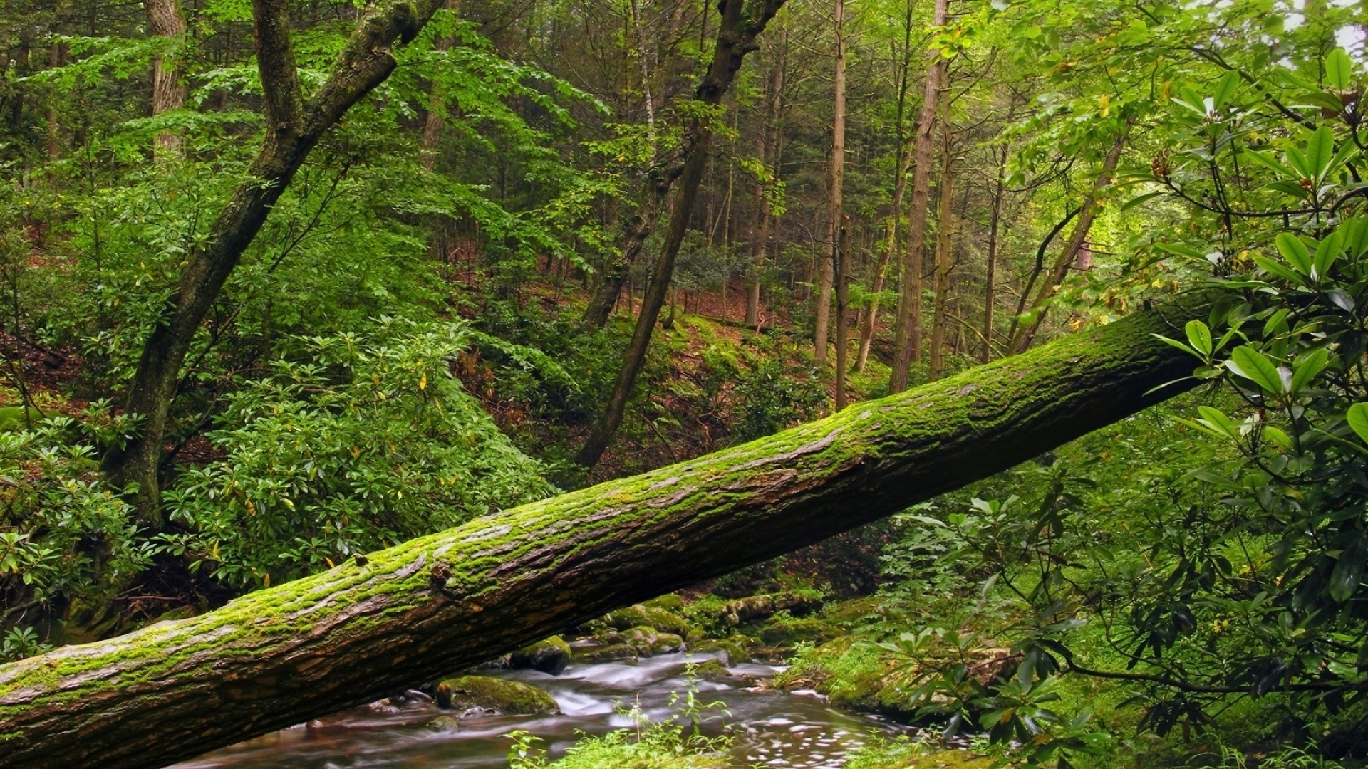 1 张 高清晰长满绿叶苔藓的树干壁纸 : 930480